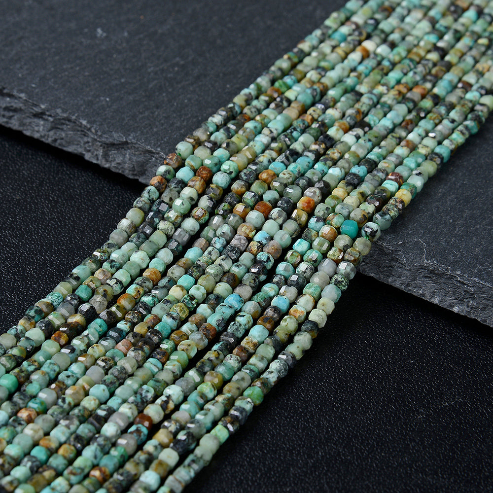 2MM Natural African Turquoise Gemstone Grade A Micro Faceted Diamond Cut Cube Loose Beads (P43)