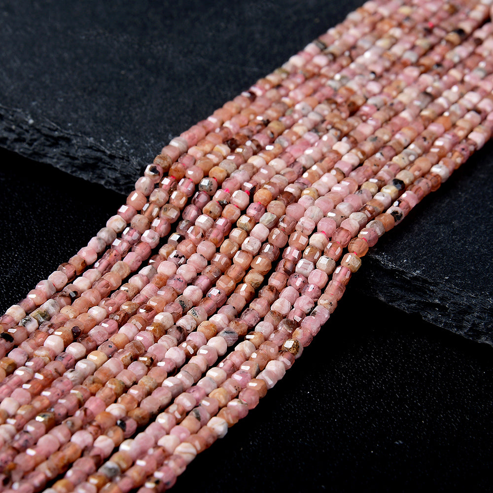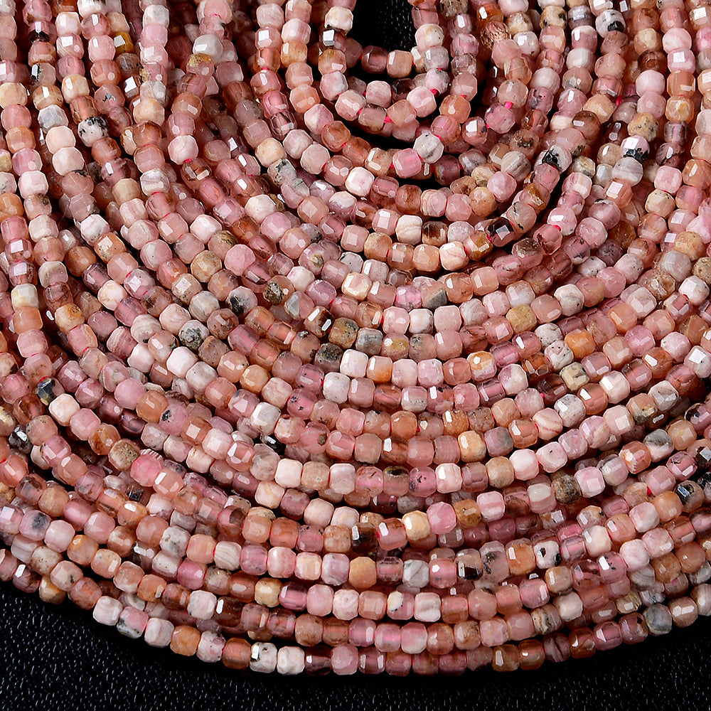 2MM Natural Argentina Rhodochrosite Gemstone Grade AA Micro Faceted Diamond Cut Cube Loose Beads (P39)