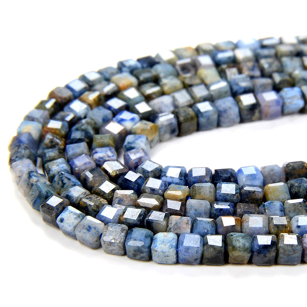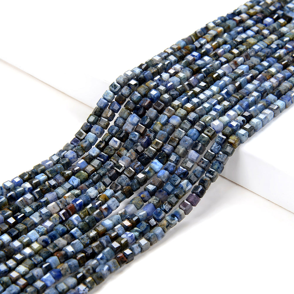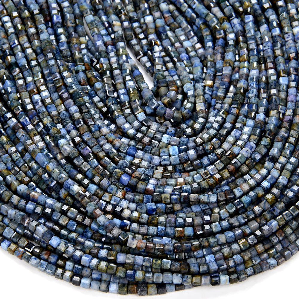 2MM Natural Dumortierite Gemstone Grade A Micro Faceted Diamond Cut Cube Loose Beads (P43)