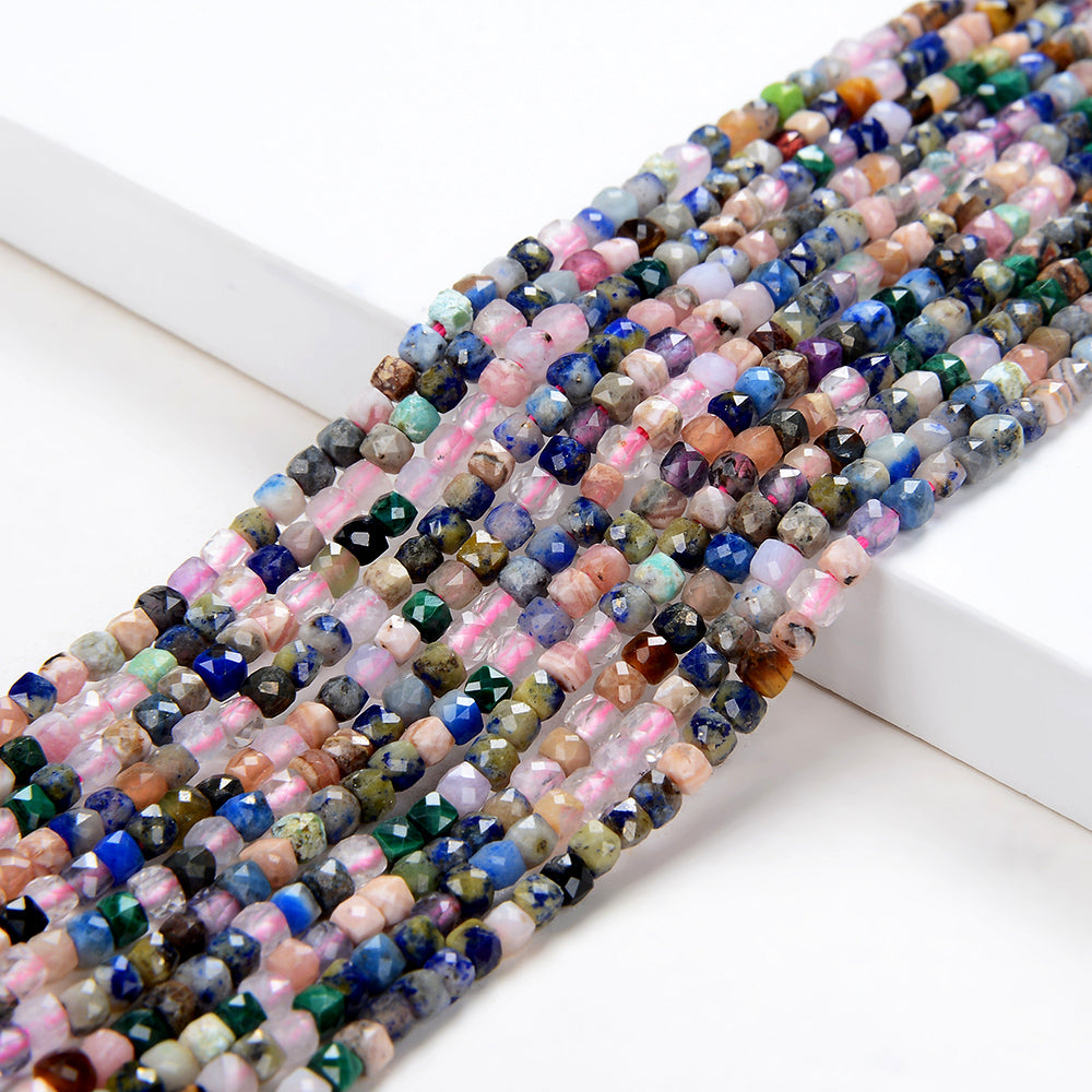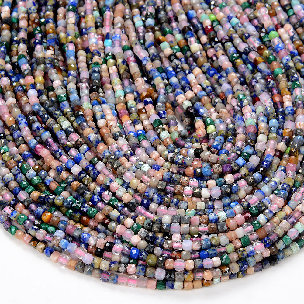 2MM Natural Galaxy Mix Stones Gemstone Micro Faceted Diamond Cut Cube Loose Beads (P42)