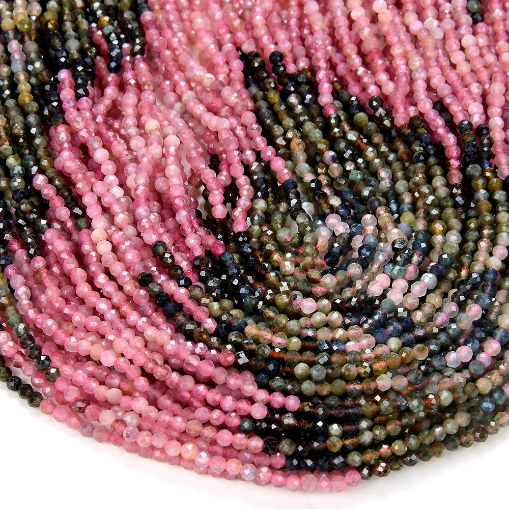 2MM Natural Multi Color Tourmaline Gemstone Grade AAA Micro Faceted Round Loose Beads 15.5 inch Full Strand (80009346-P26)