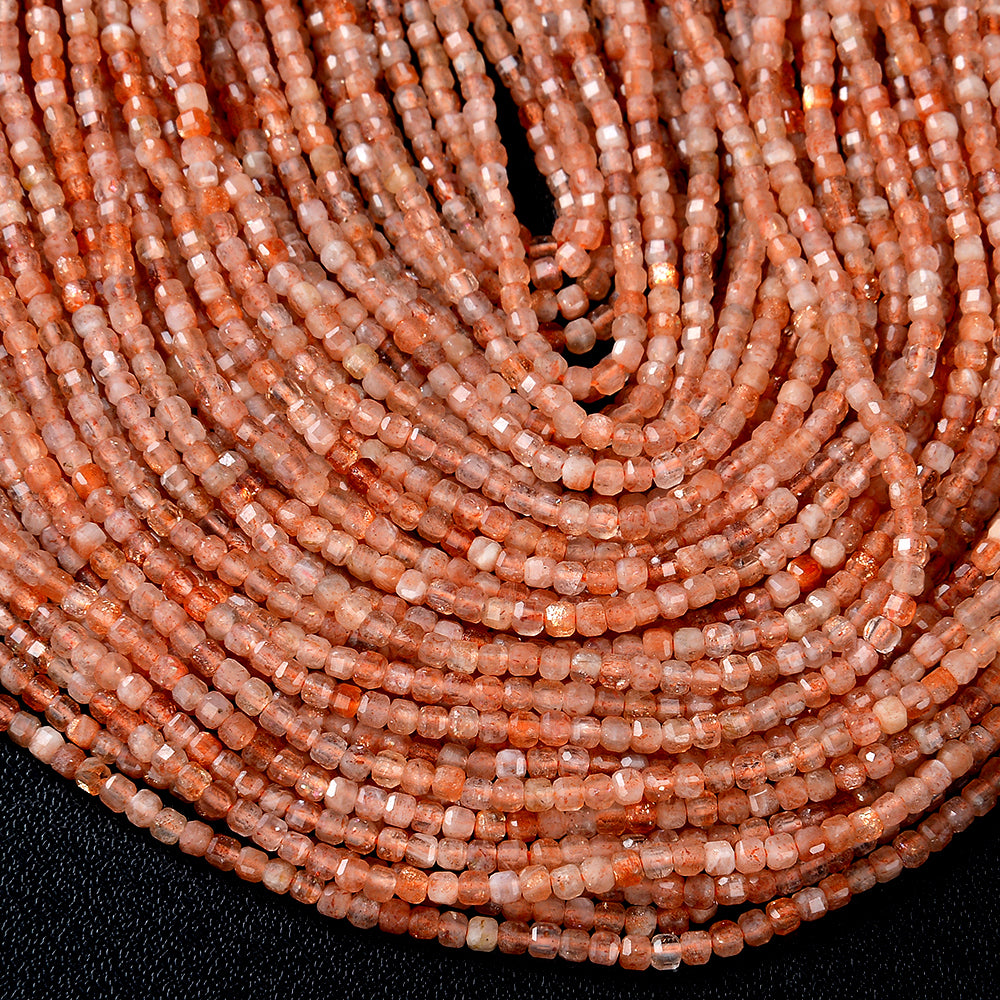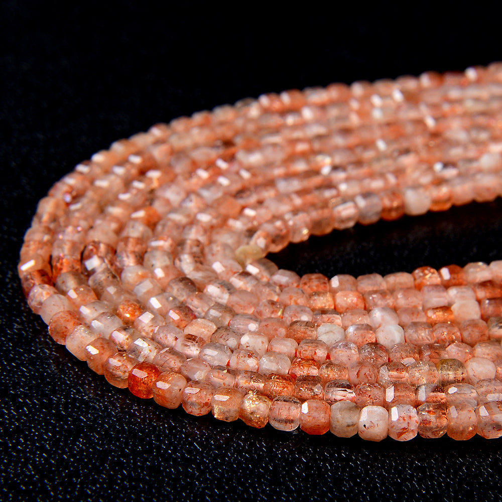 2MM Natural Sunstone Lepidocrocite Gemstone Grade AAA Micro Faceted Diamond Cut Cube Loose Beads (P42)
