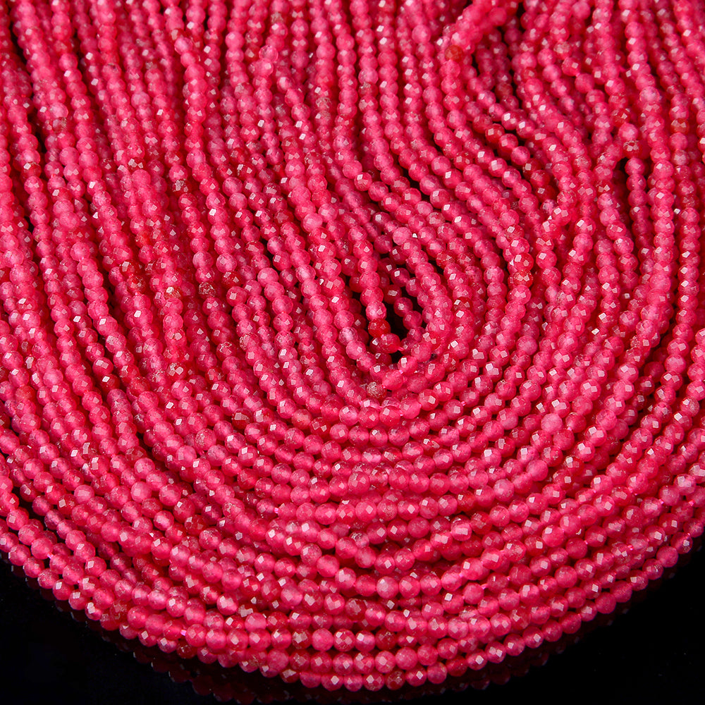 2MM Red Jade Gemstone Grade AAA Micro Faceted Round Loose Beads 15 inch Full Strand (80016206-P49)