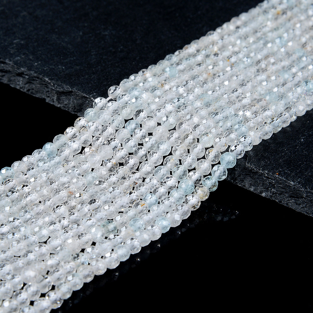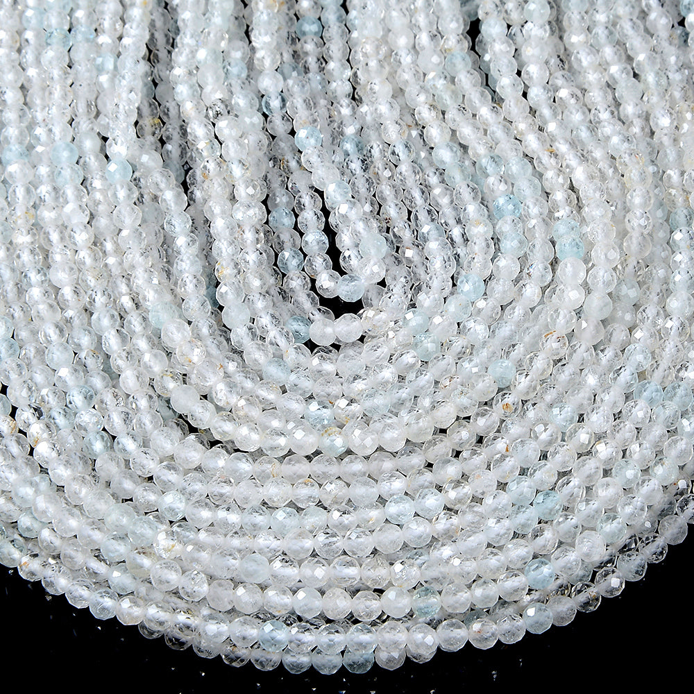 Topaz Gemstone, Micro Faceted Round shaped, measures approximately 3-4MM , features a wonderful luster with excellent polish. Drilled hole. Color, tone, and quality of these Topaz beads are well matched on strand.