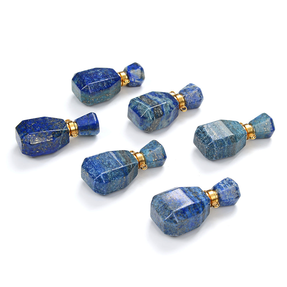 33X17X13MM Natural Lapis Lazuli Gemstone Perfume Bottle Pendant Faceted, Essential Oil Bottle Beads 1 Bead (80017238-P71)