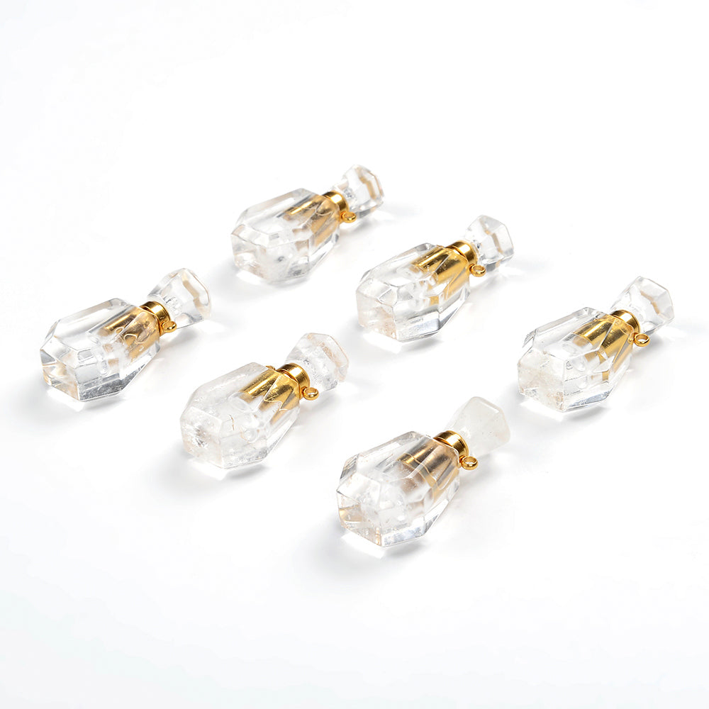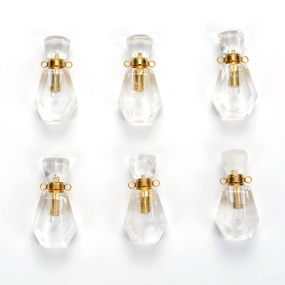 34X17X11MM Natural Rock Crystal Clear Quartz Gemstone Perfume Bottle Pendant Faceted, Essential Oil Bottle Beads 1 Bead (80017233-P70)