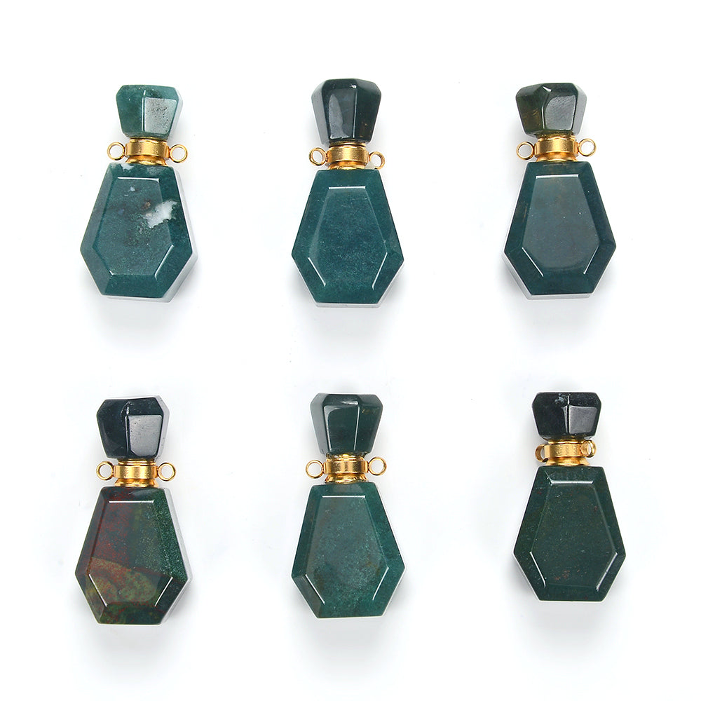34X17X13MM Natural African Blood Stone Gemstone Perfume Bottle Pendant Faceted, Essential Oil Bottle Beads 1 Bead (80017221-P70)