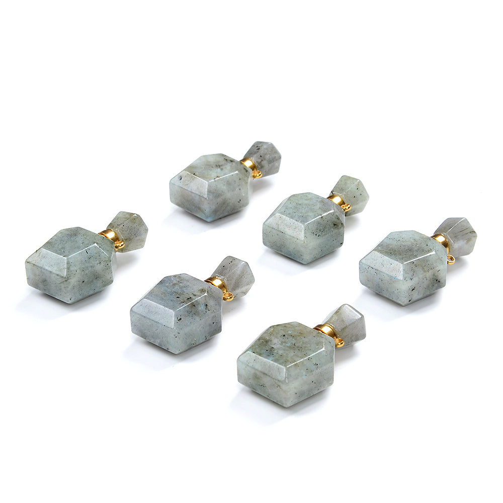 34X21X13MM Natural Gray Labradorite Gemstone Perfume Bottle Pendant Faceted, Essential Oil Bottle Beads 1 Bead (80017224-P70)