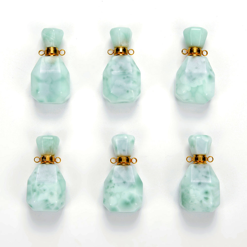 35X18X13MM Natural Green Moonstone Gemstone Perfume Bottle Pendant Faceted, Essential Oil Bottle Beads 1 Bead (80017232-P70)