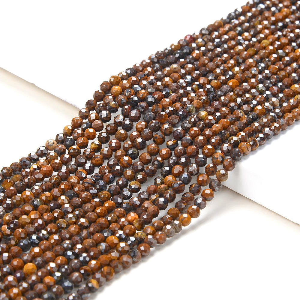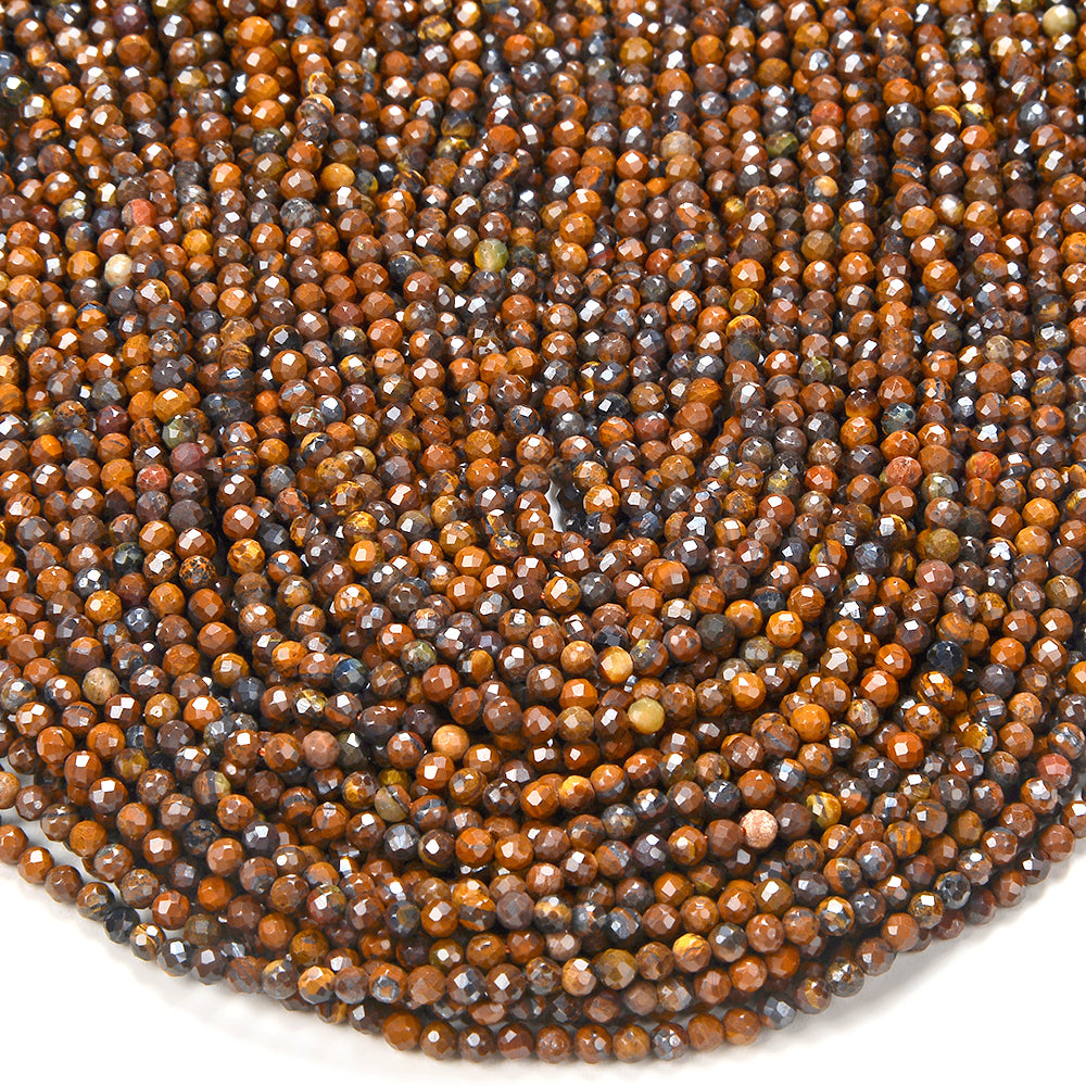 3MM Natural Iron Tiger Eye Gemstone Grade AAA Micro Faceted Round Loose Beads 15 inch Full Strand (80016212-P49)