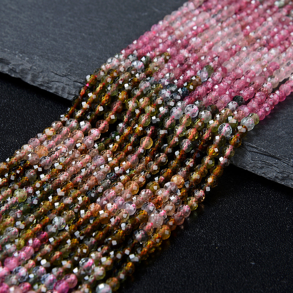 3MM Natural Multi Color Tourmaline Gemstone Grade AAA Micro Faceted Round Loose Beads 15 inch Full Strand (80009348-P26)