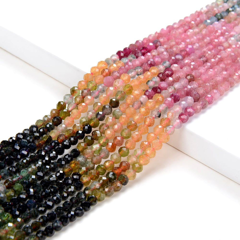 3MM Natural Multi Color Tourmaline Gemstone Grade AAA Micro Faceted Round Loose Beads 15 inch Full Strand (80009349-P26)