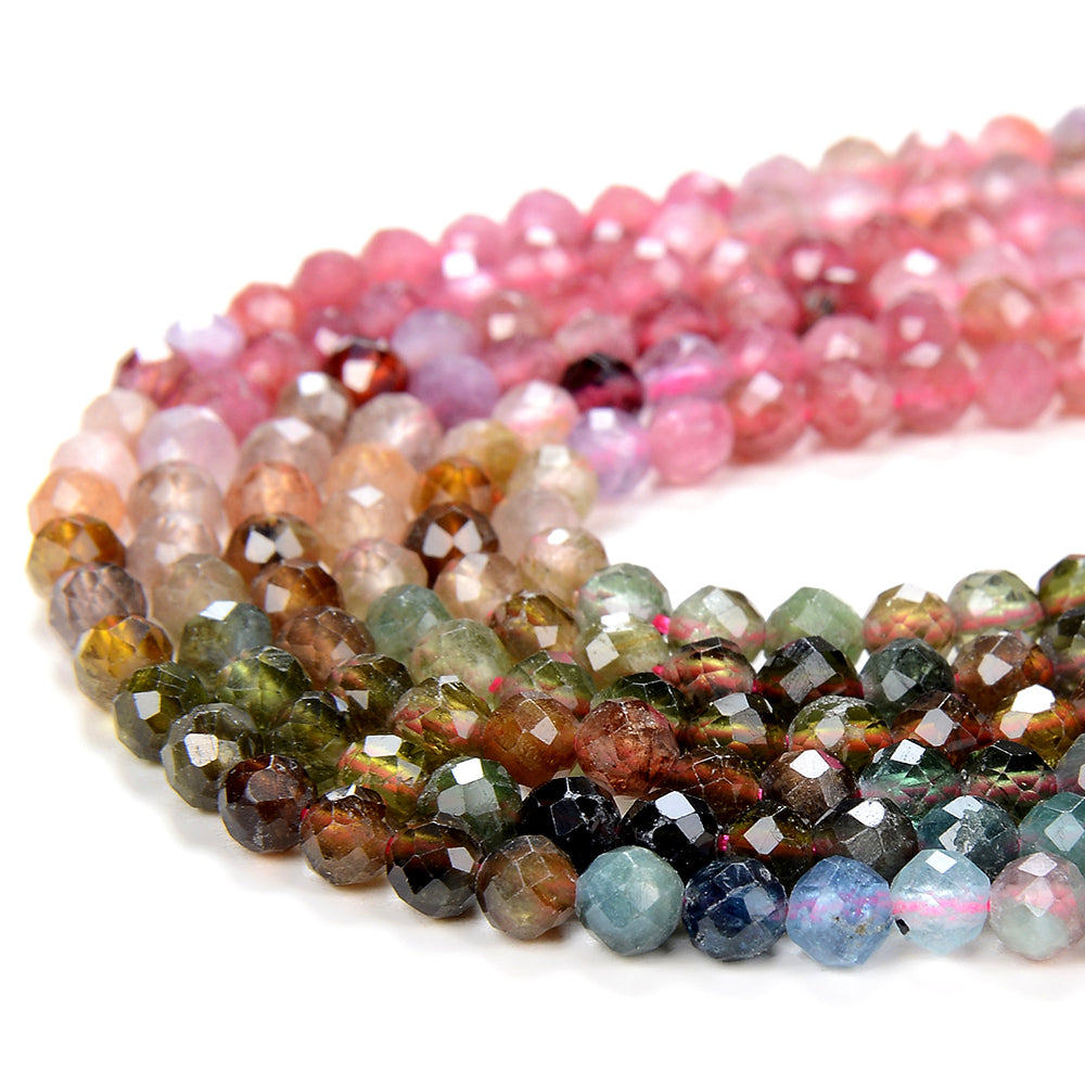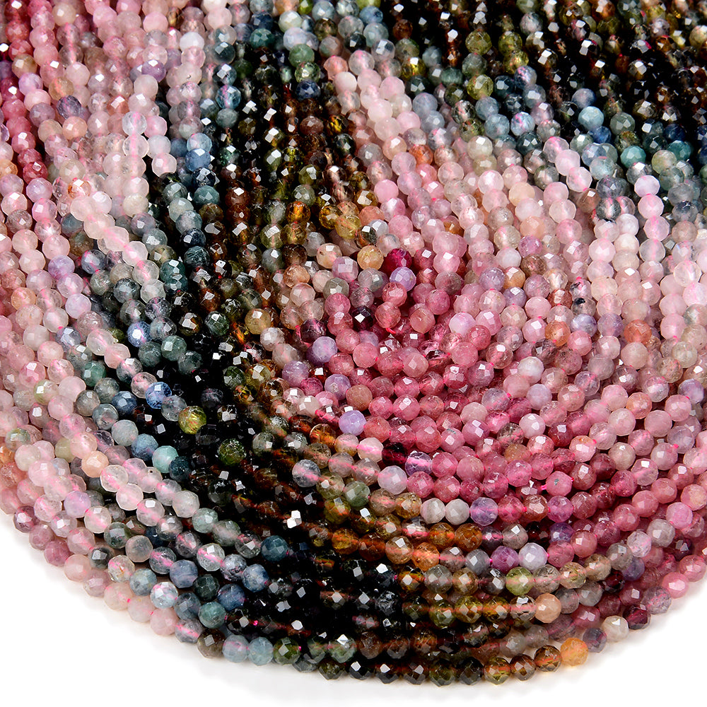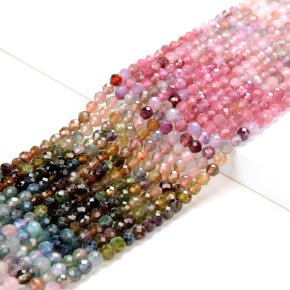 3MM Natural Multi Color Tourmaline Gemstone Grade AAA Micro Faceted Round Loose Beads 15 inch Full Strand (80009350-P26)
