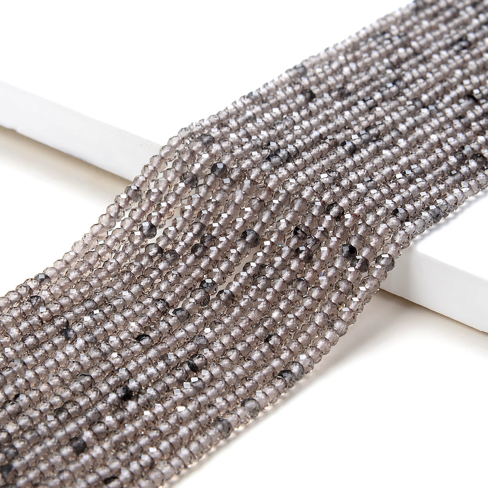 3X2MM Natural Ice Obsidian Gemstone Grade AAA Micro Faceted Rondelle Loose Beads 15 inch Full Strand (80016384-P61)