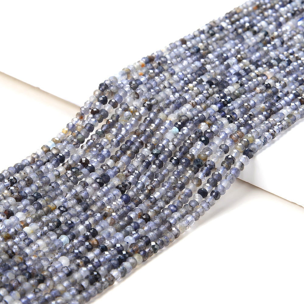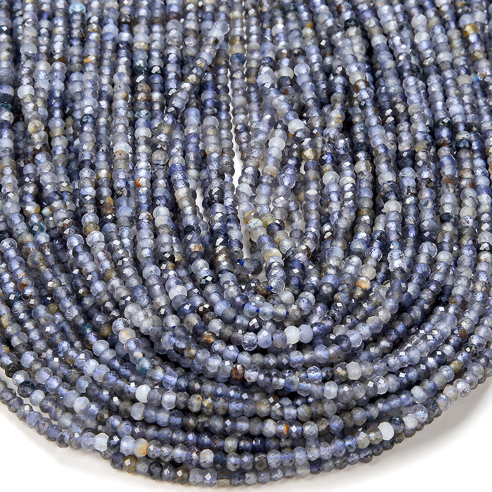 3X2MM Natural Iolite Gemstone Grade AA Micro Faceted Rondelle Loose Beads 15 inch Full Strand (80016385-P61)