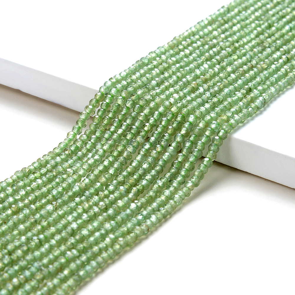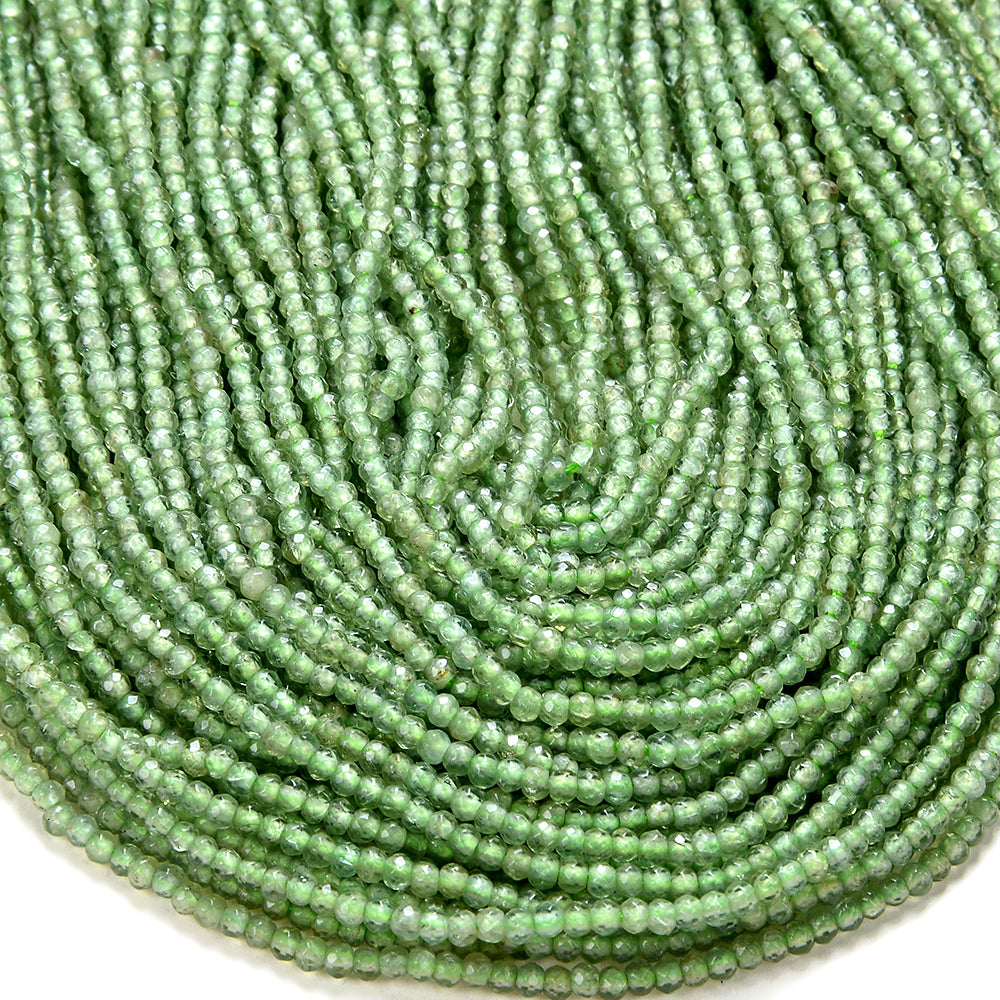 Peridot Gemstone, Micro Faceted Rondelle shaped, measures approximately 3X2MM , features a wonderful luster with excellent polish. Drilled hole. Color, tone, and quality of these Peridot beads are well matched on strand.