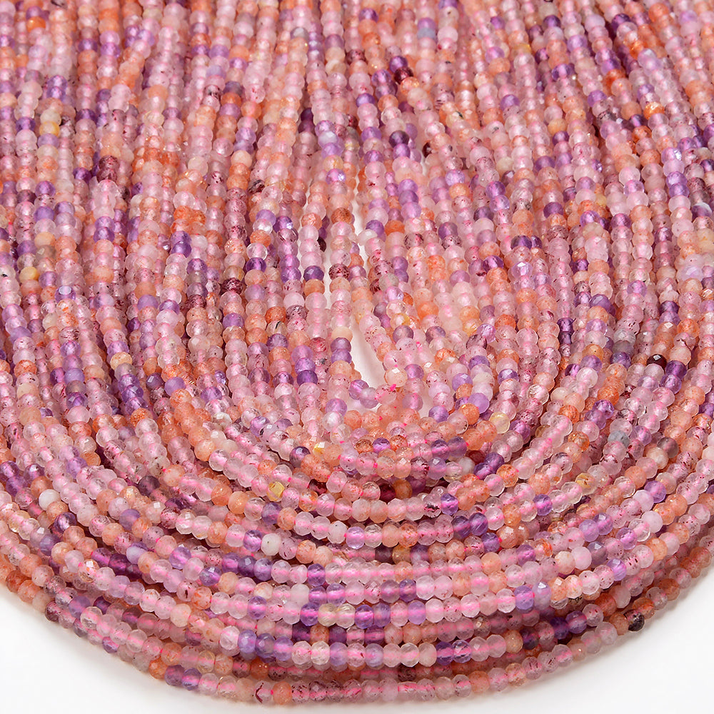 3X2MM Natural Sunstone Lepidocrocite Amethyst Gemstone Grade AA Micro Faceted Rondelle Loose Beads 15 inch Full Strand (80016392-P61)