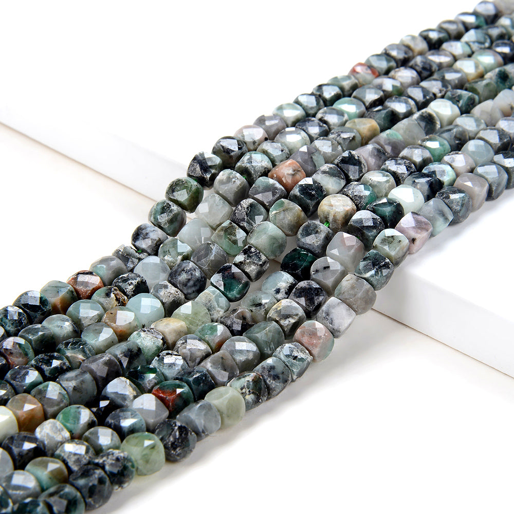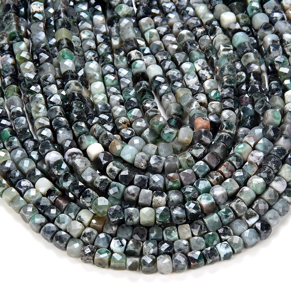 4-5MM Natural Emerald Gemstone Micro Faceted Cube Loose Beads (P44)