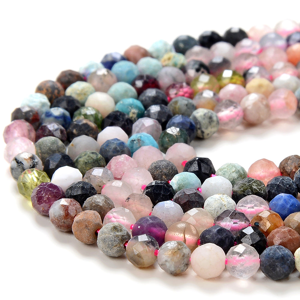 4MM Natural Multi Color Mix Stones Gemstone Grade Micro Faceted Round Loose Beads 15 inch Full Strand (80016320-P56)