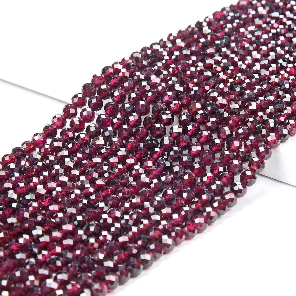 4MM Natural Purple Red Garnet Gemstone Micro Faceted Round Loose Beads 15.5 inch Full Strand (80017910-P83)