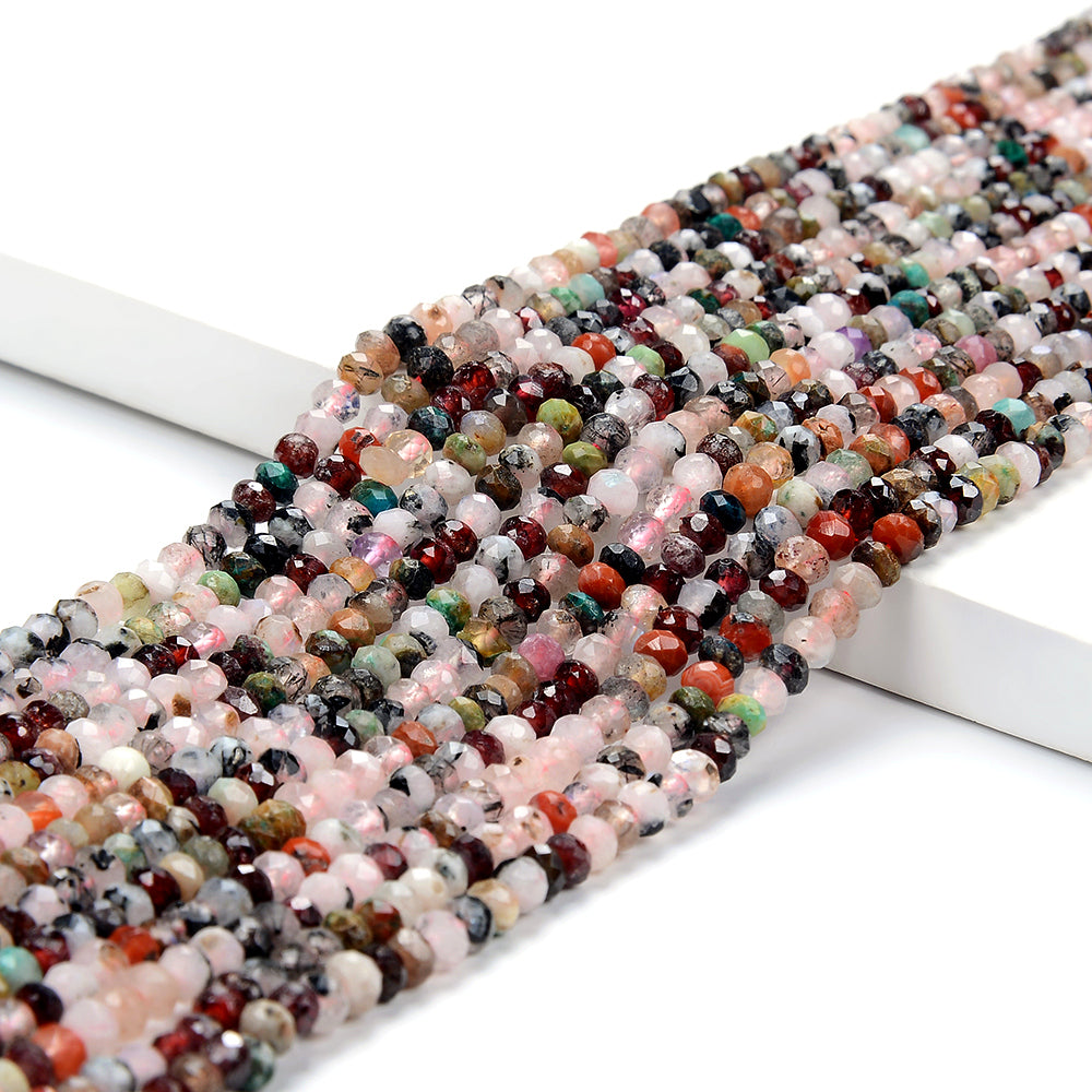 4X2MM Natural Multi Color Mix Stones Gemstone Micro Faceted Rondelle Loose Beads (P75)