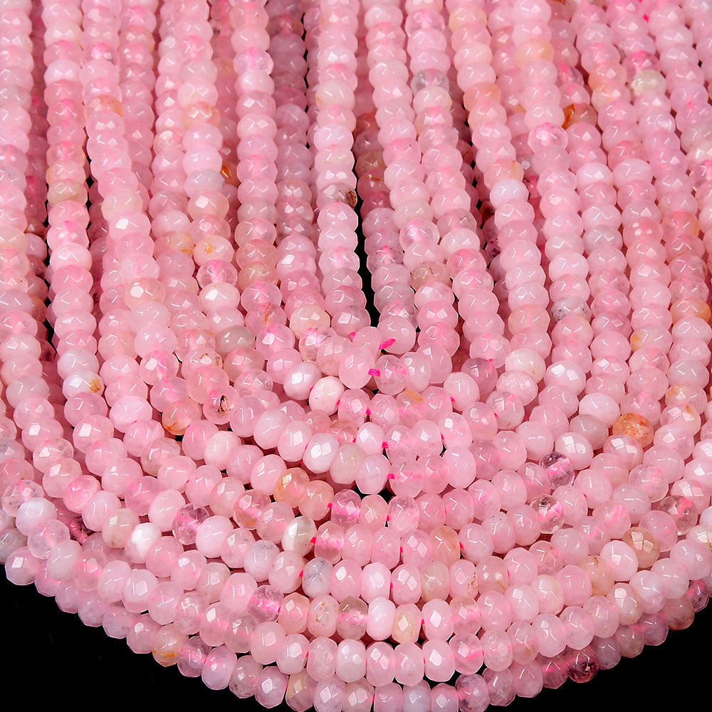 4X3MM Natural Madagascar Rose Quartz Gemstone Grade AAA Faceted Rondelle Loose Beads 15 inch Full Strand (80016872-D344)