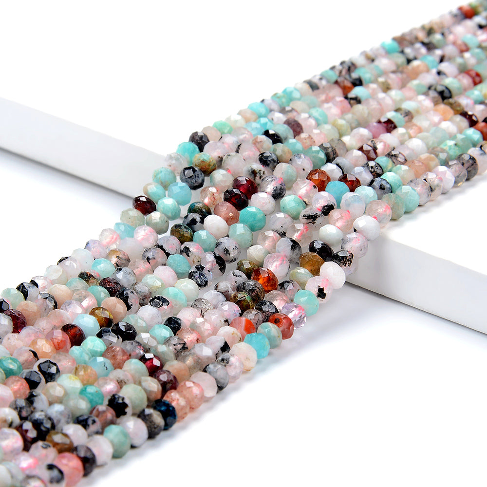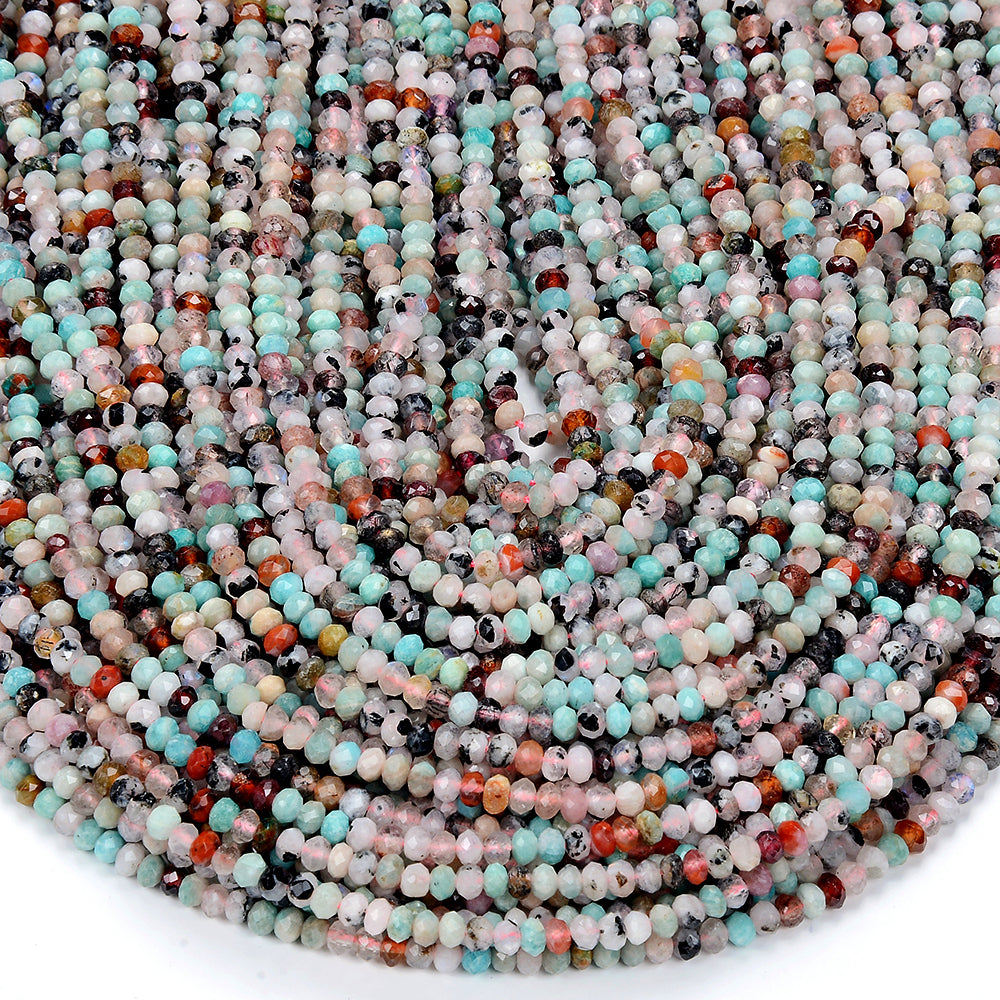4X3MM Natural Multi Color Mix Stones Gemstone Micro Faceted Rondelle Loose Beads (P75)