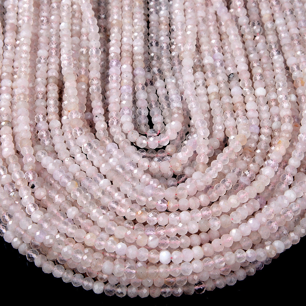 4X3MM Natural Rose Quartz Gemstone Grade A Micro Faceted Rondelle Loose Beads 15 inch Full Strand (80016404-P62)