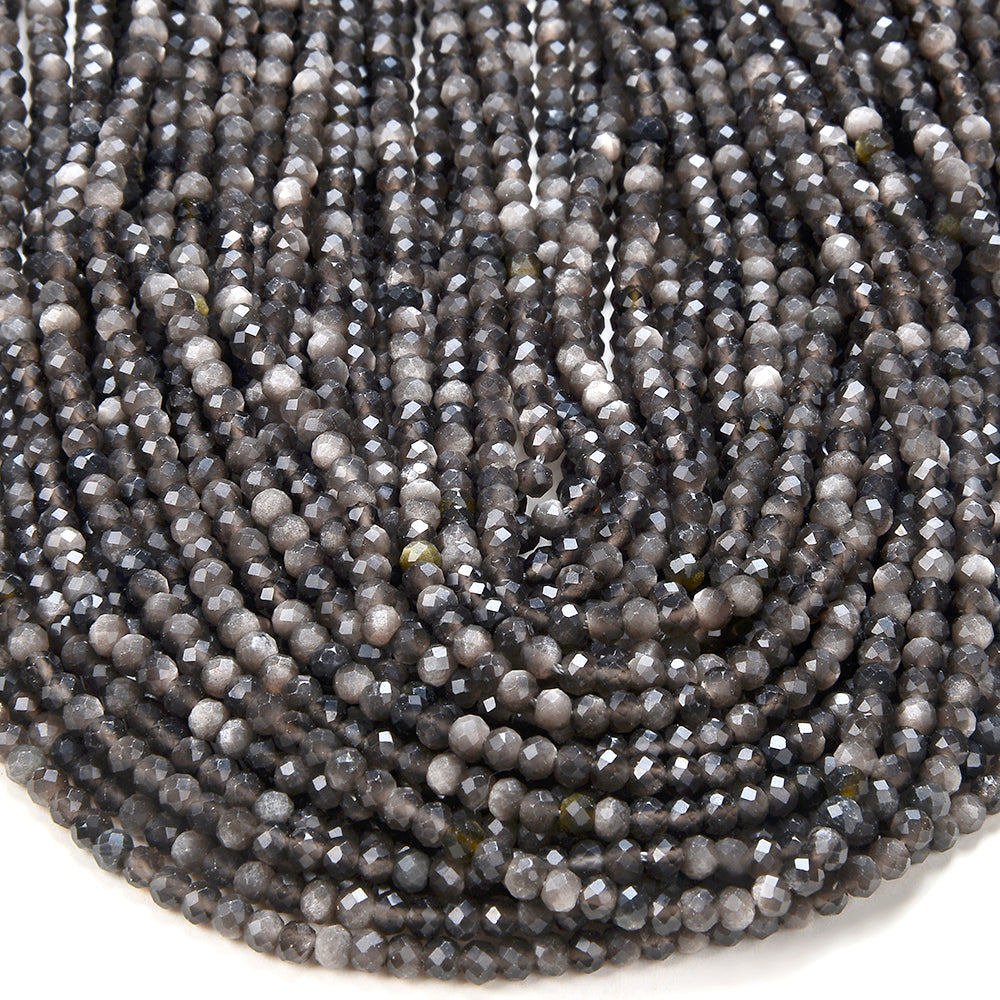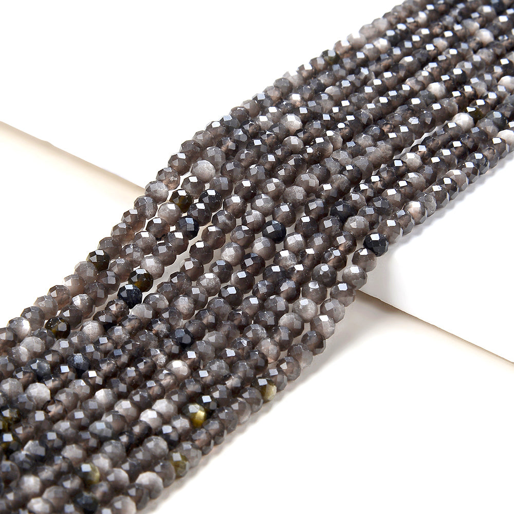 4X3MM Natural Silver Obsidian Gemstone Grade AAA Micro Faceted Rondelle Loose Beads 15 inch Full Strand (80016402-P62)