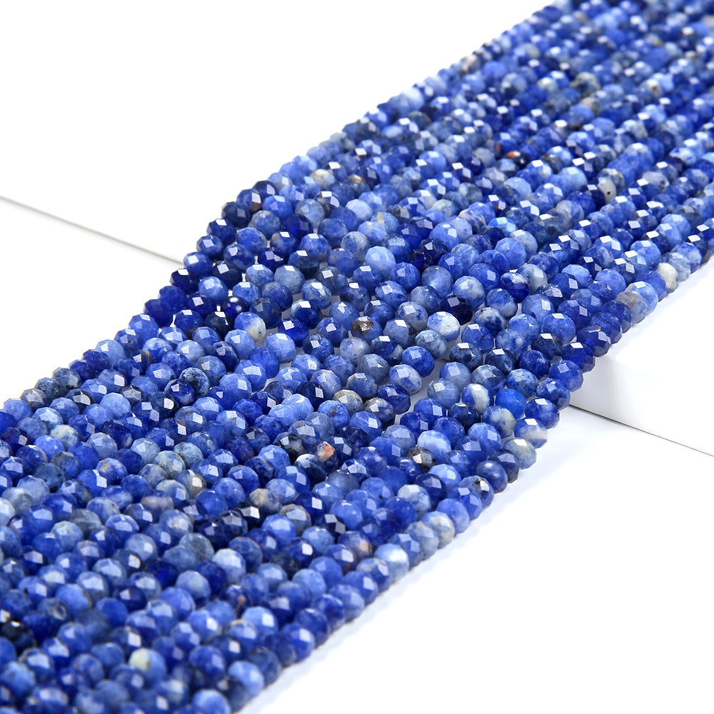 4X3MM Natural Sodalite Gemstone Grade AAA Micro Faceted Rondelle Loose Beads 15 inch Full Strand (80016397-P62)