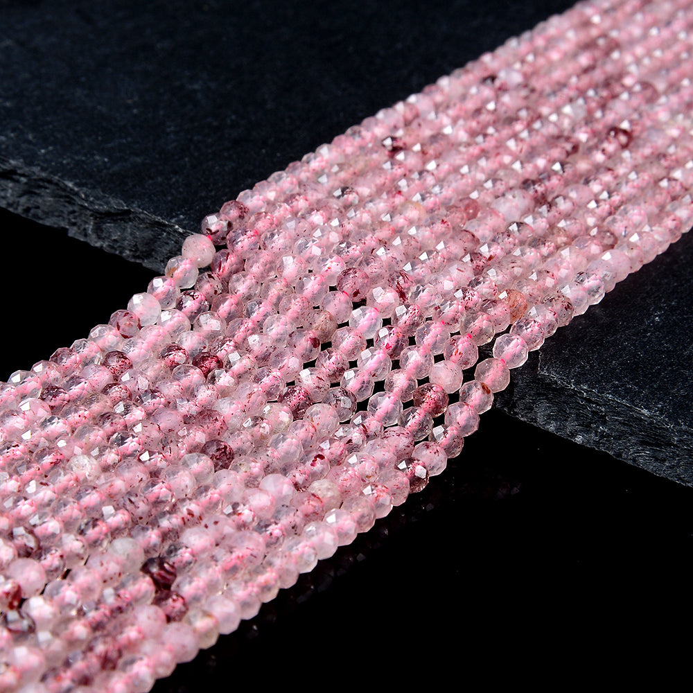 4X3MM Natural Strawberry Lepidocrocite Quartz Gemstone Grade AA Micro Faceted Rondelle Loose Beads 15 inch Full Strand (80016403-P62)