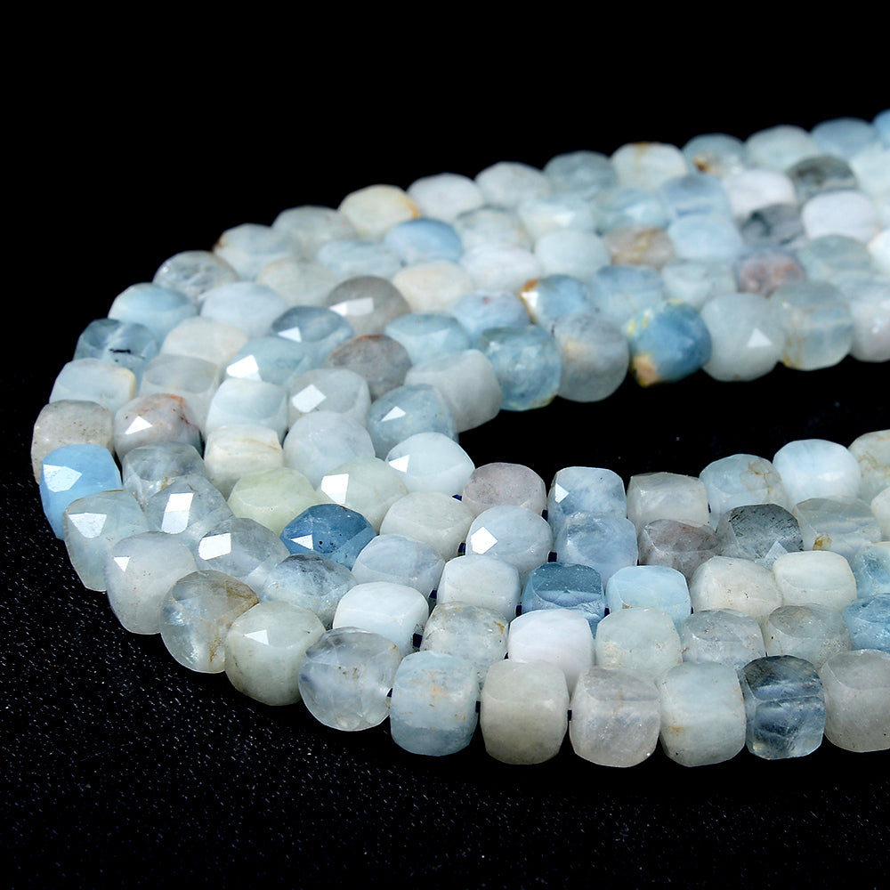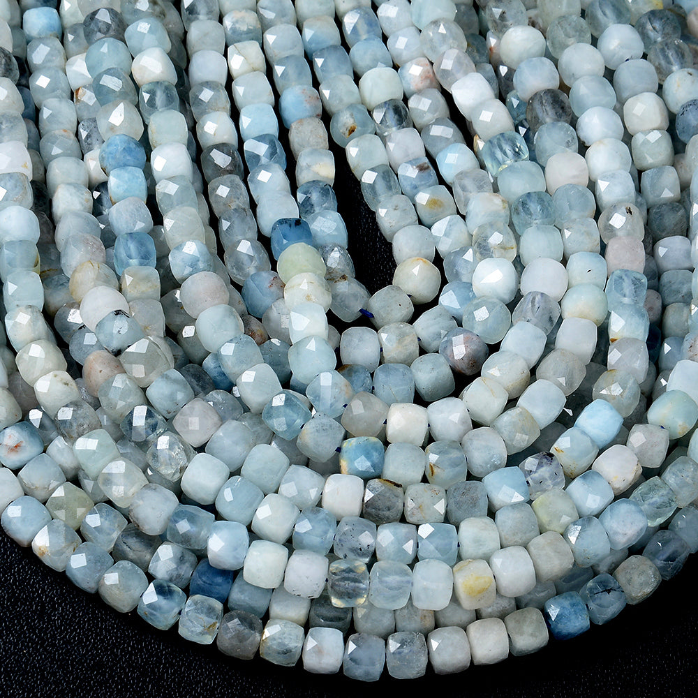 5MM Natural Aquamarine Gemstone Grade A Micro Faceted Cube Loose Beads (P47)