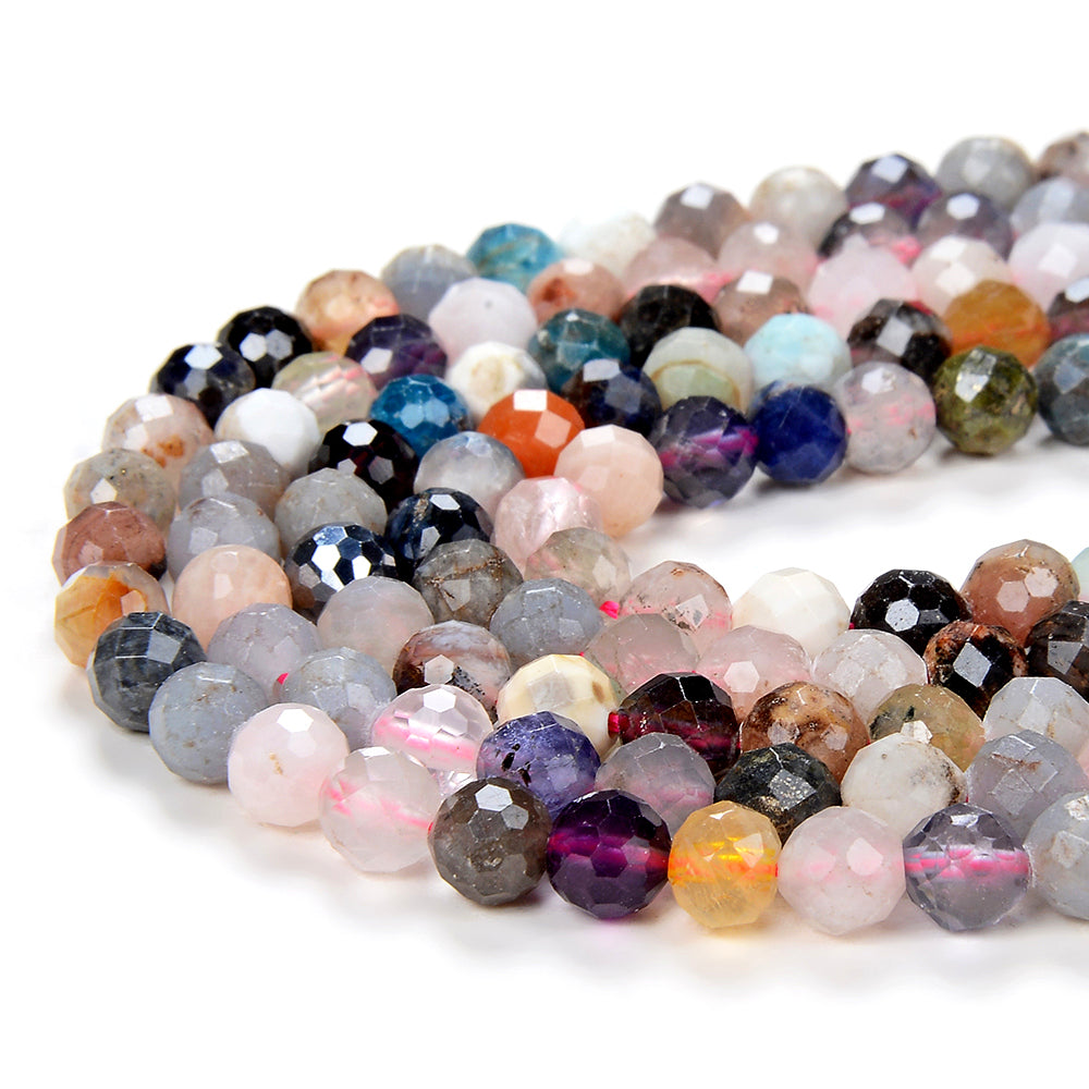 5MM Natural Multi Color Galaxy Mix Stones Gemstone Micro Faceted Round Loose Beads 15.5 inch Full Strand (80009449-P33)
