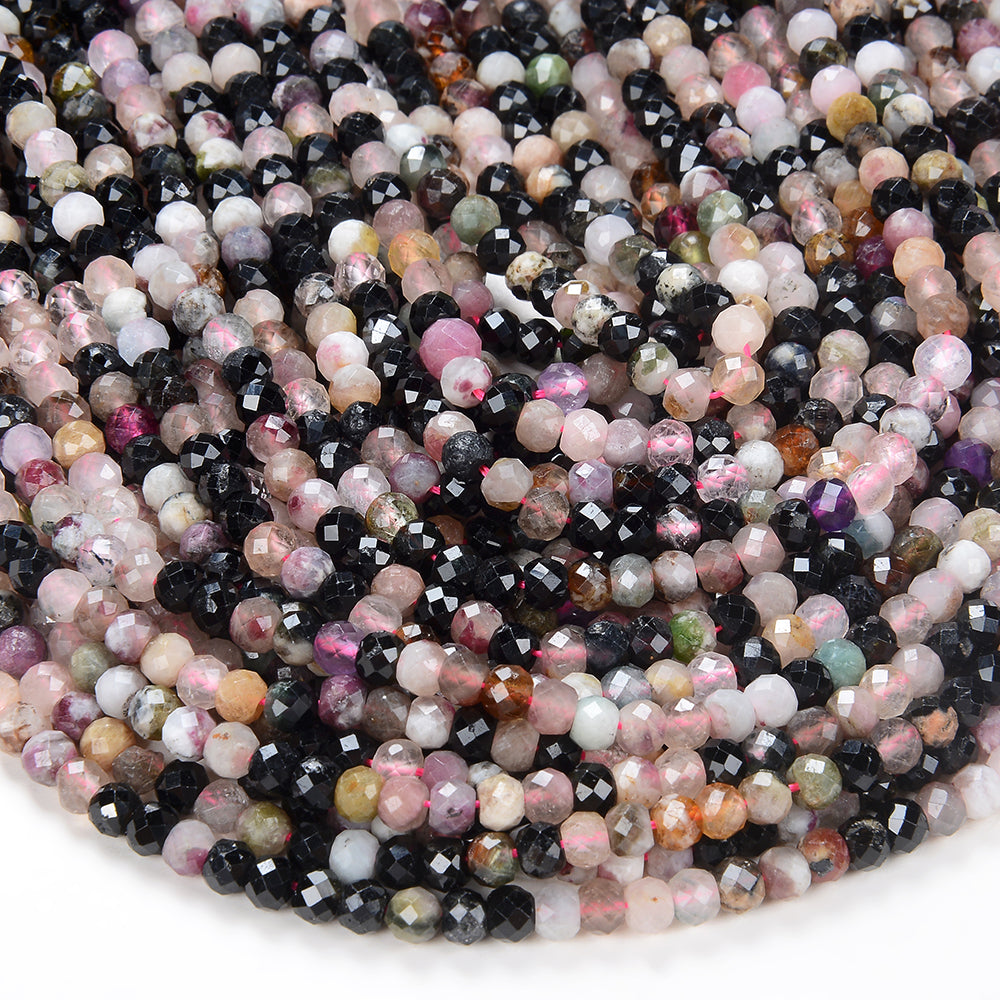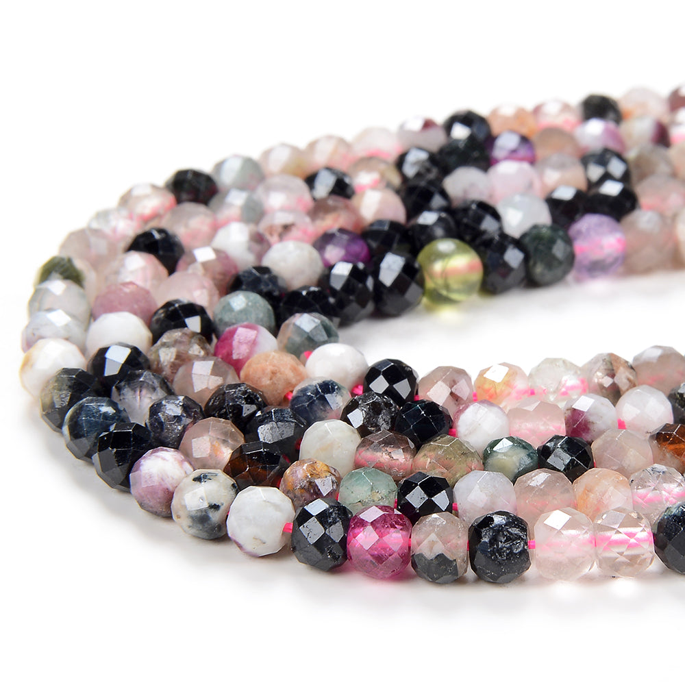 5X4MM Natural Multi Color Tourmaline Gemstone Micro Faceted Round Loose Beads (P46)