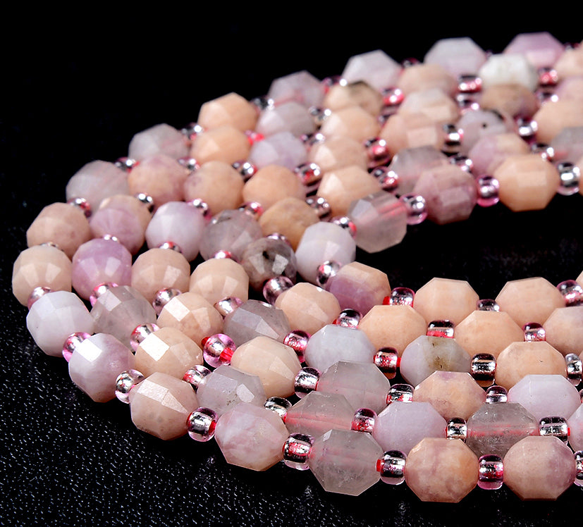 6MM Madagascar Rose Quartz Gemstone Grade A Faceted Prism Double Point Cut Loose Beads (D212)