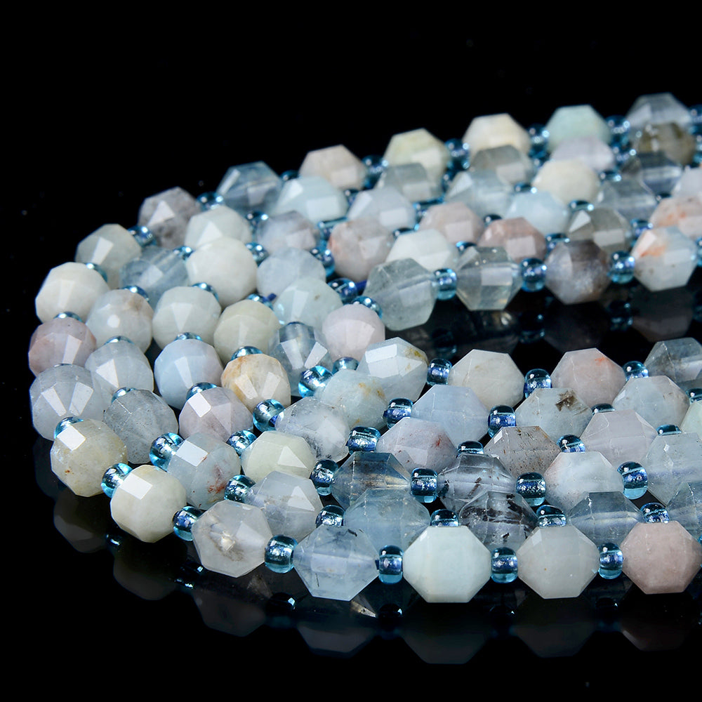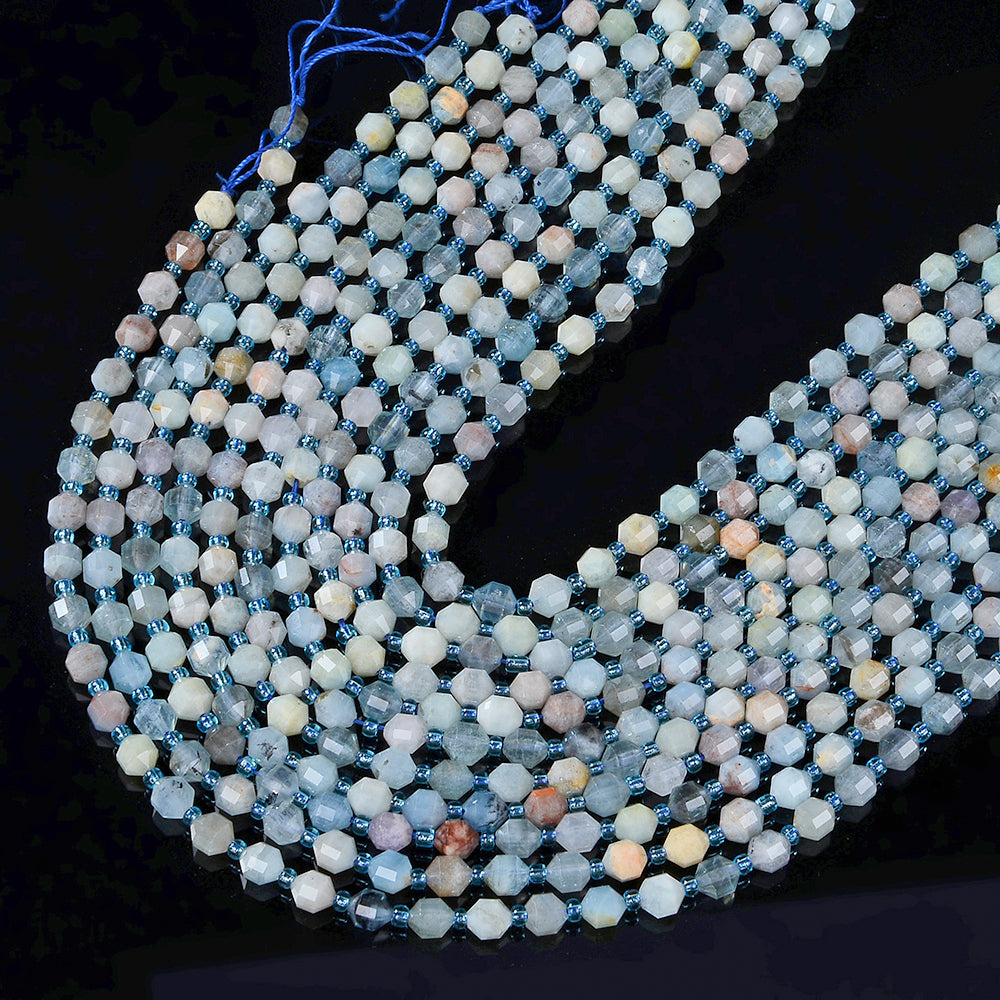 6MM Natural Aquamarine Gemstone Grade AA Faceted Prism Double Point Cut Loose Beads (D213)