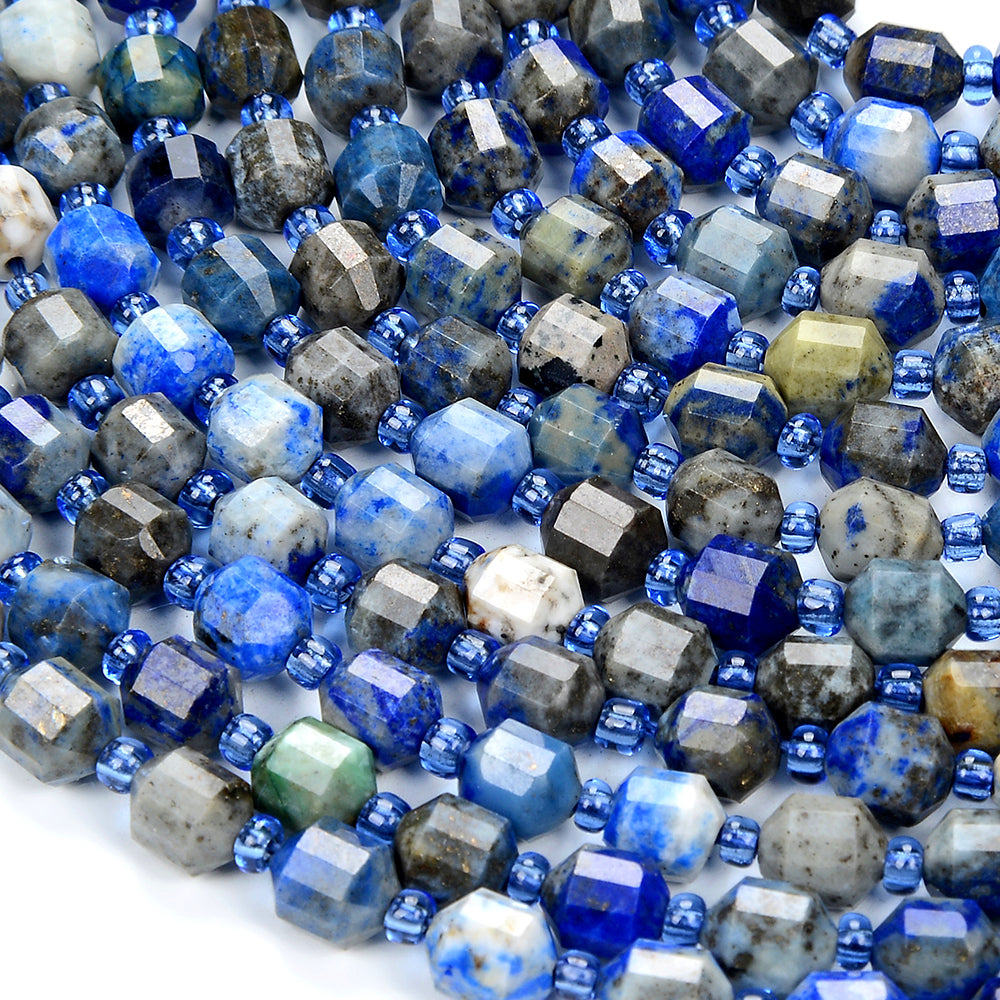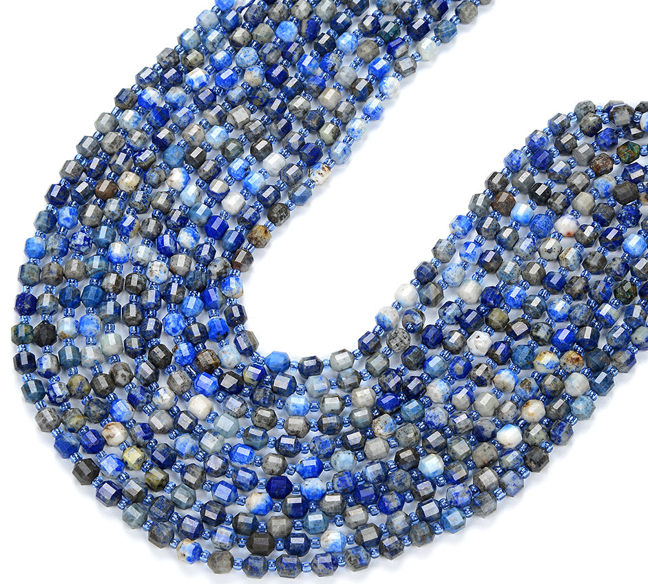 6MM Natural Lapis Gemstone Faceted Prism Double Point Cut Loose Beads (D342)