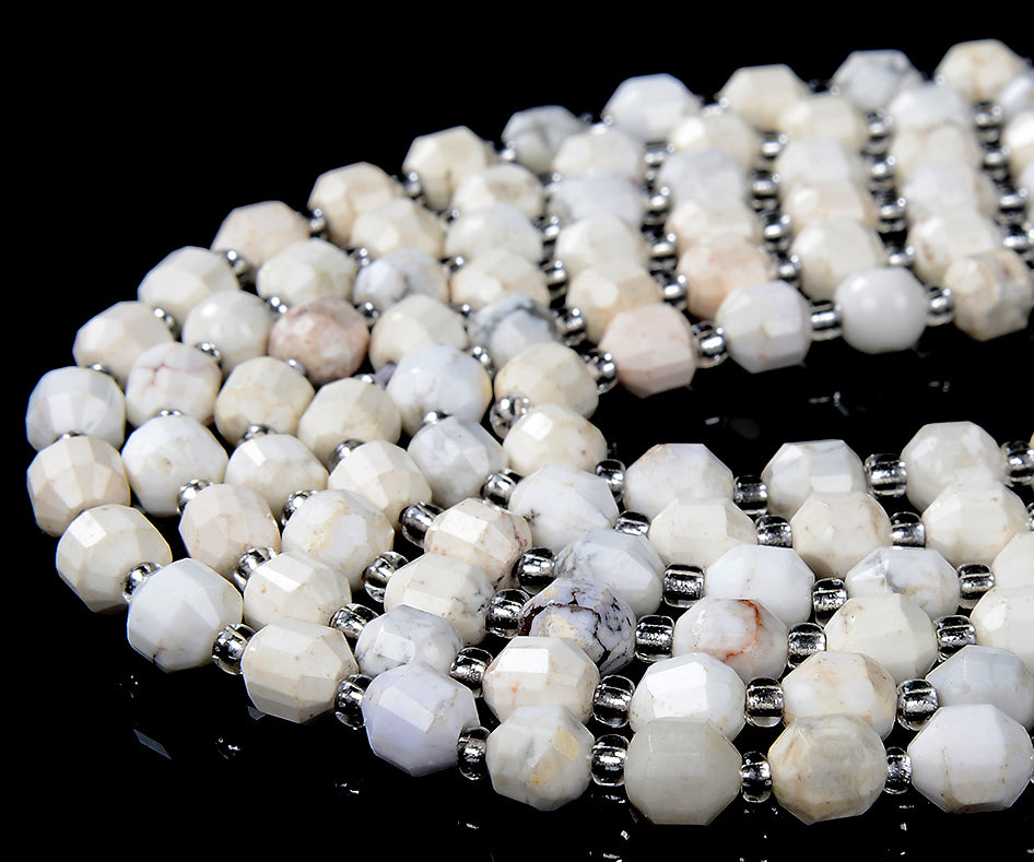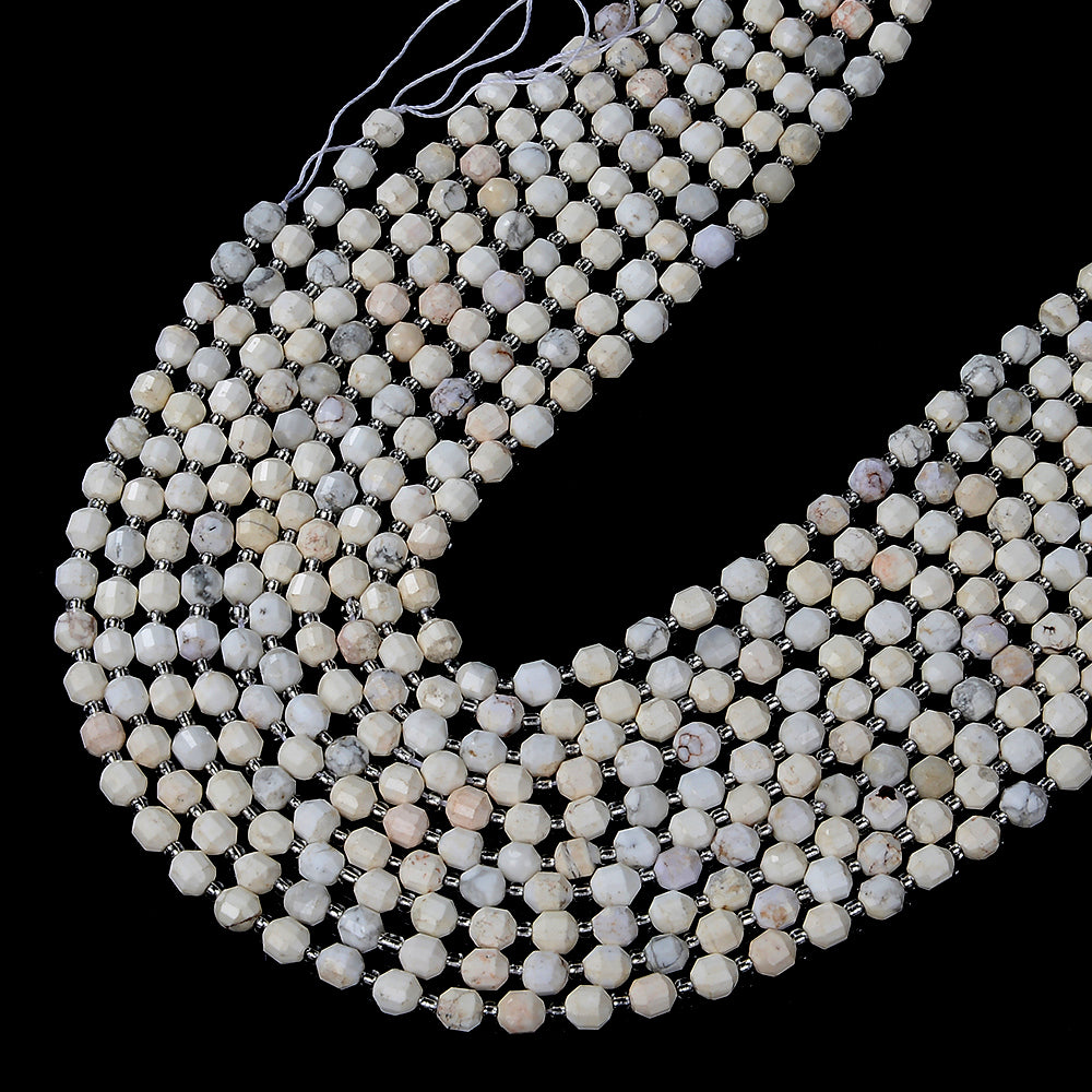 6MM Natural White Turquoise Gemstone Grade A Faceted Prism Double Point Cut Loose Beads (D213)