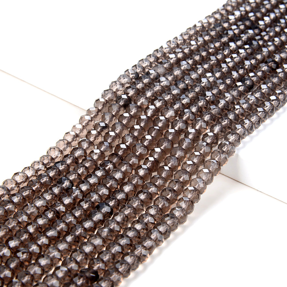 6X4MM Natural Smoky Quarzt Gemstone Grade AAA Micro Faceted Rondelle Loose Beads (P37)