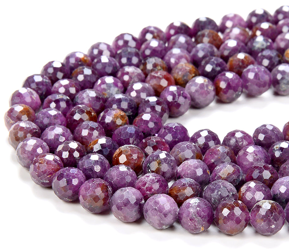 8MM Rare New! Natural Purple Red Ruby Gemstone Grade AA Micro Faceted Round Loose Beads (D224)