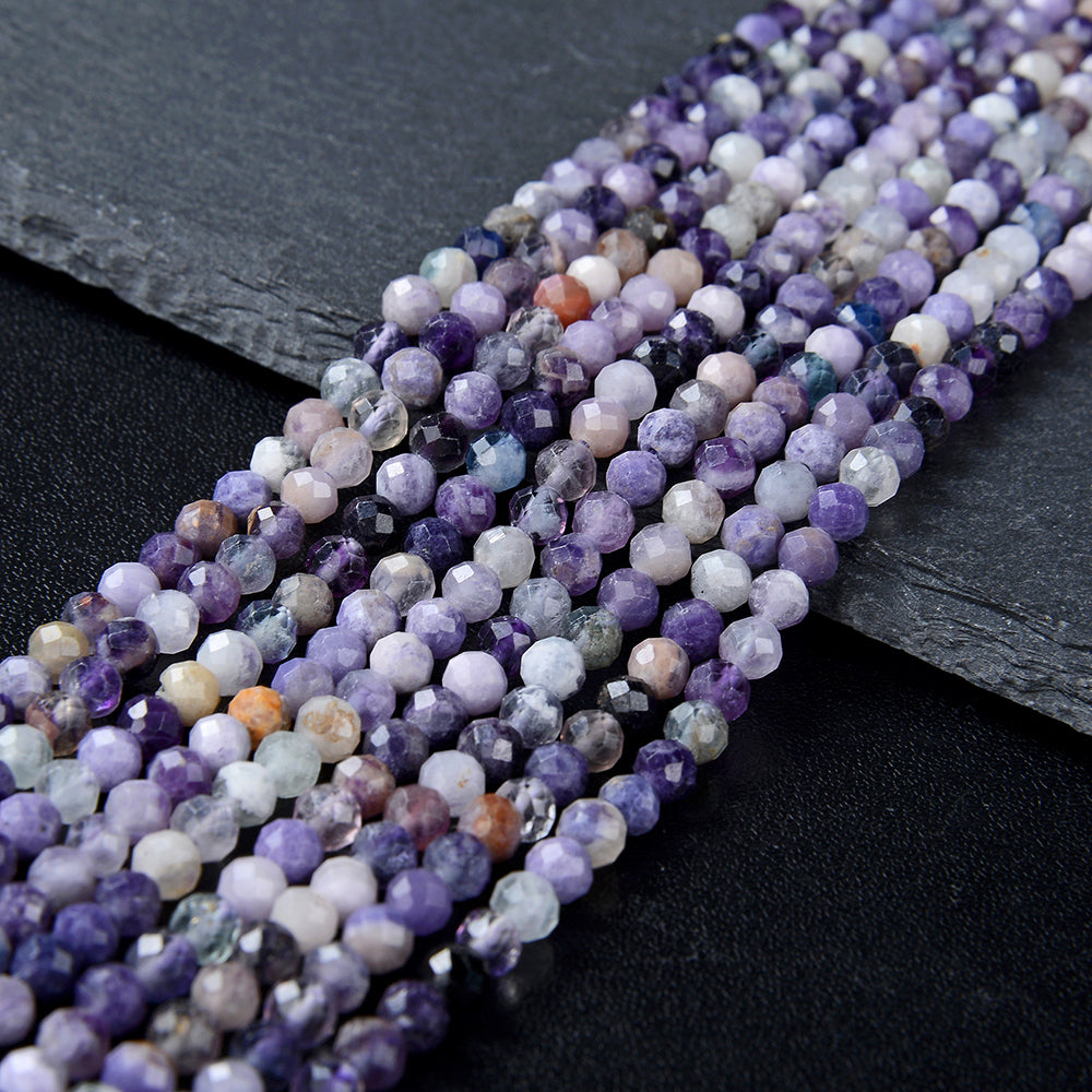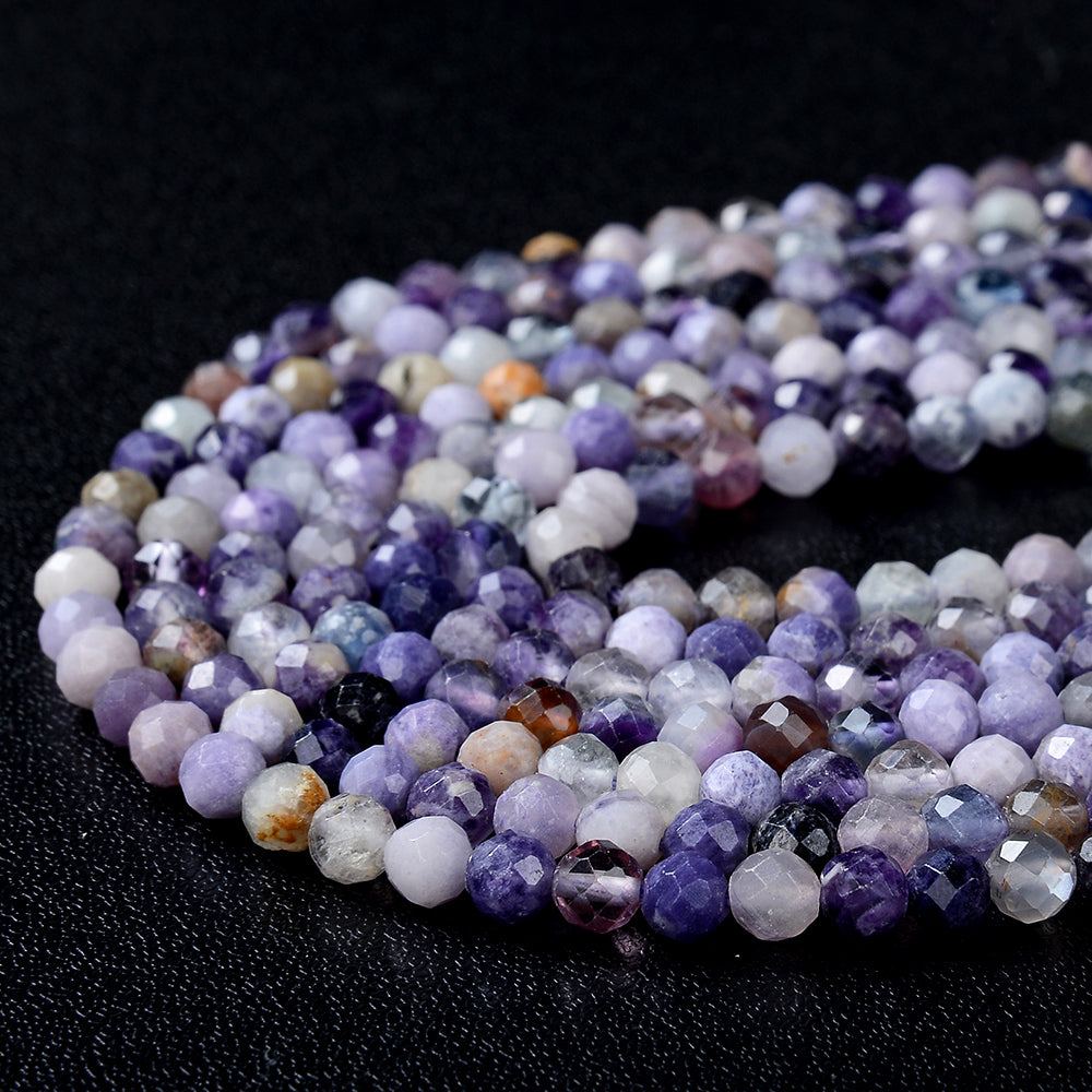 Chevron Flower Amethyst Multi Color Gemstone AA Micro Faceted Round 2MM 3MM 4MM Loose Beads Full Strand (P26)