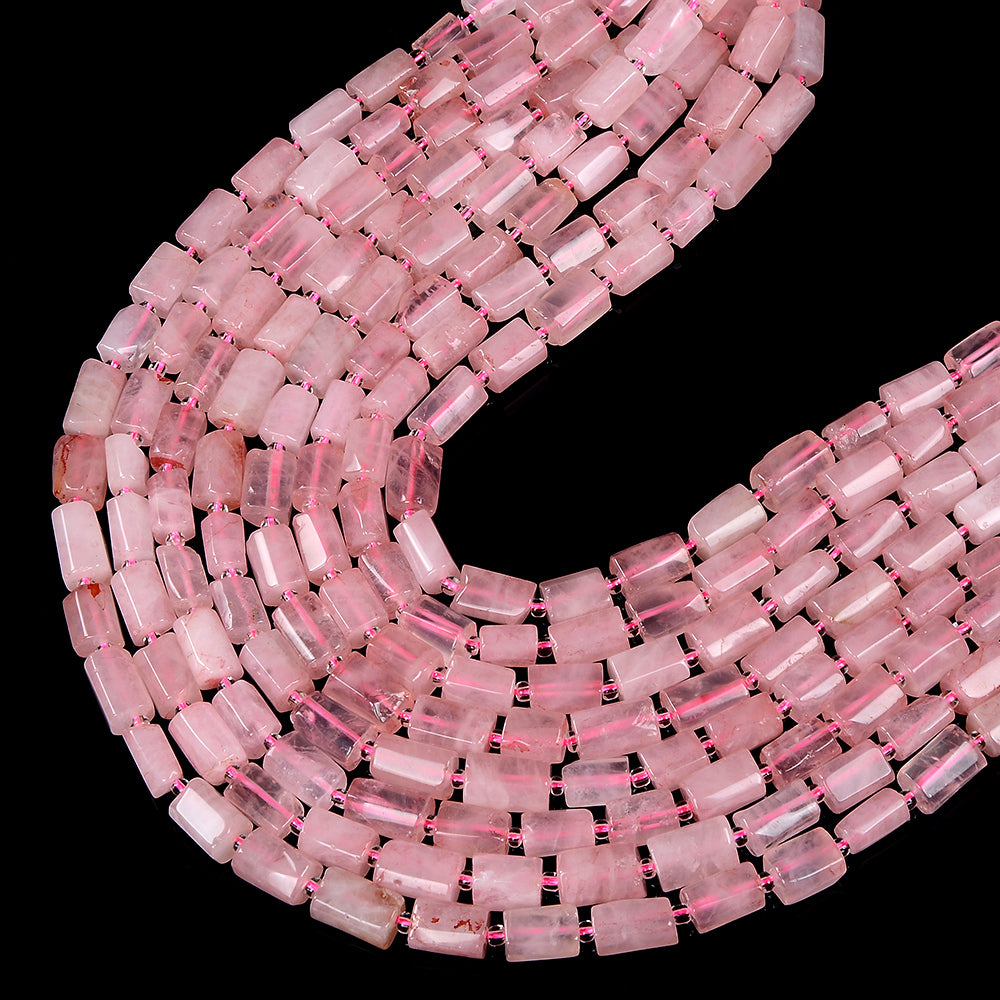 Madagascar Rose Quartz Gemstone 12X8MM Faceted Cylinder Round Tube Loose Beads (D464)