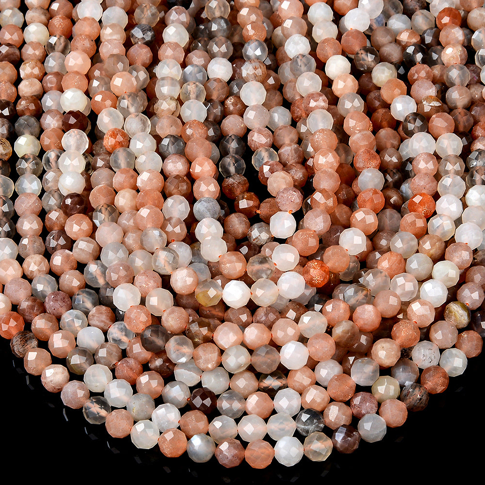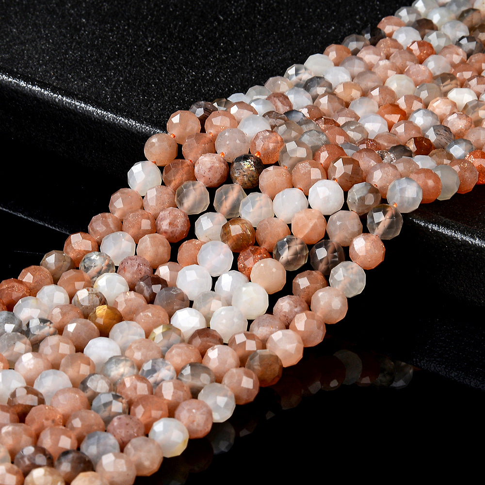 Multi Color Sunstone Gemstone Grade AAA 6-7MM Micro Faceted Round Loose Beads 15 inch Full Strand (80018239-P98)