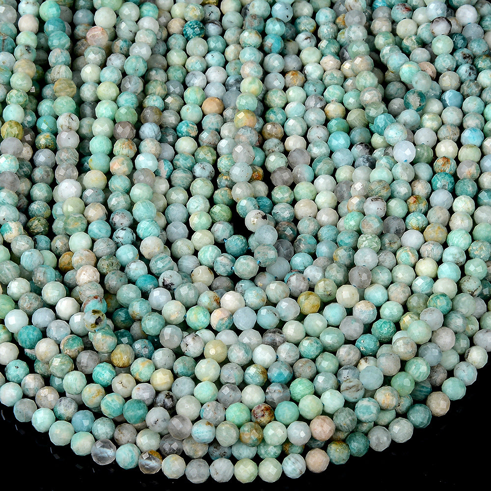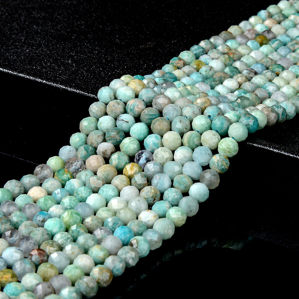 Natural Amazonite Gemstone Grade A 6-7MM Micro Faceted Round Loose Beads 15 inch Full Strand (80018247-P99)