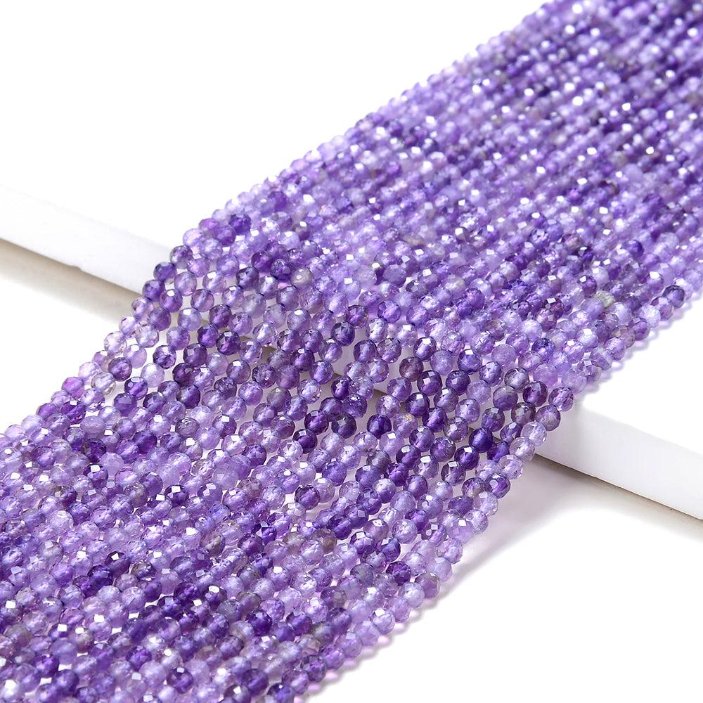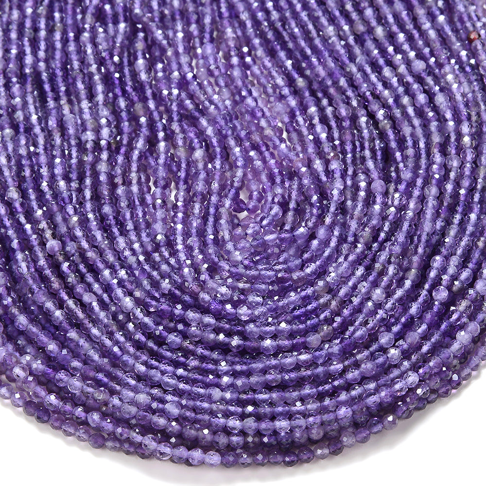 Natural Amethyst Gemstone Grade AA Micro Faceted Round 2MM 3MM Loose Beads 15 inch Full Strand (P57)