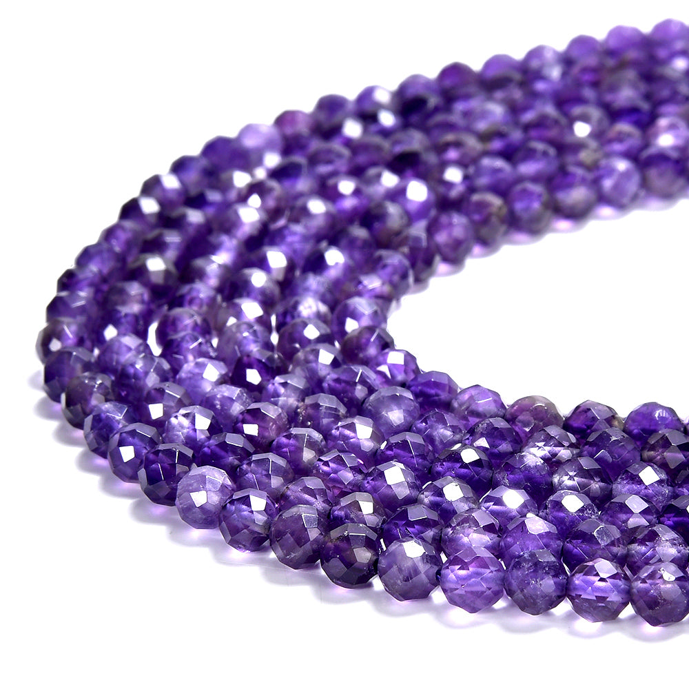 Natural Amethyst Gemstone Grade AAA Micro Faceted Round 4MM Loose Beads 15 inch Full Strand (80019461-P104)
