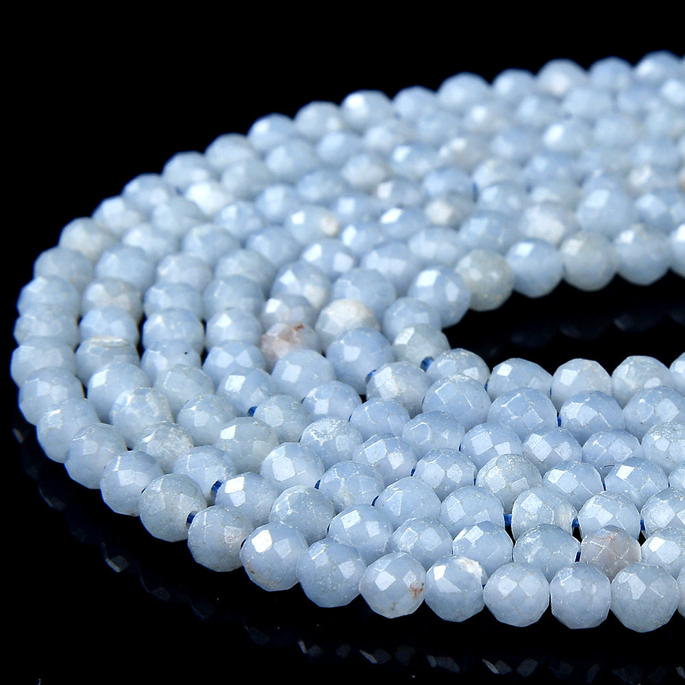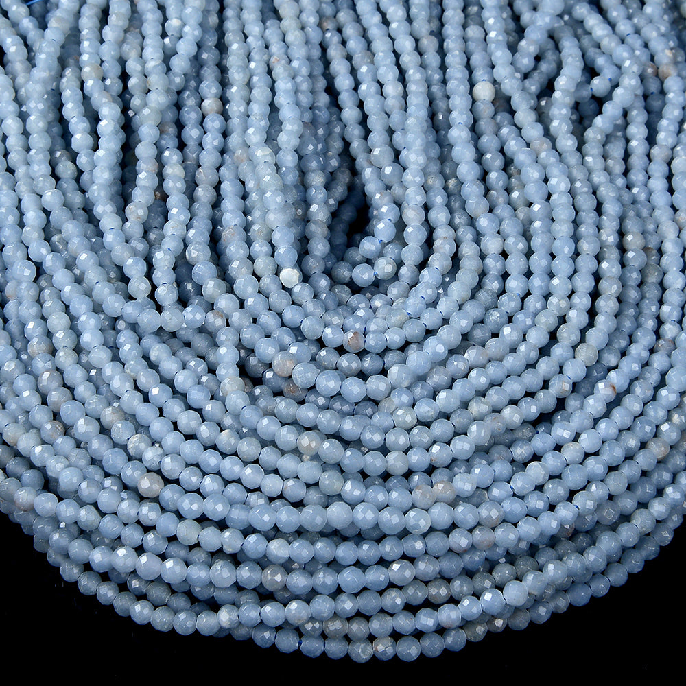 Natural Angelite Gemstone Micro Faceted Round 3MM 4MM Loose Beads 15 inch Full Strand (P57)