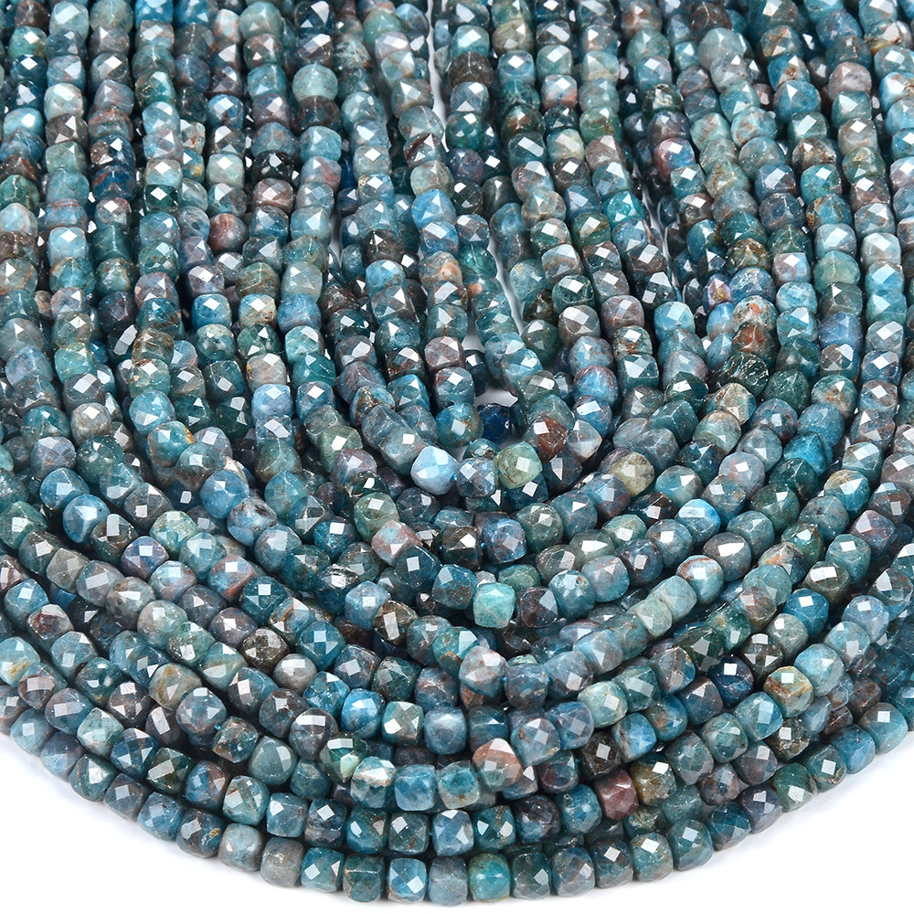 Natural Apatite Gemstone Grade A Micro Faceted Square Cube 4MM 4-5MM Loose Beads (P76)