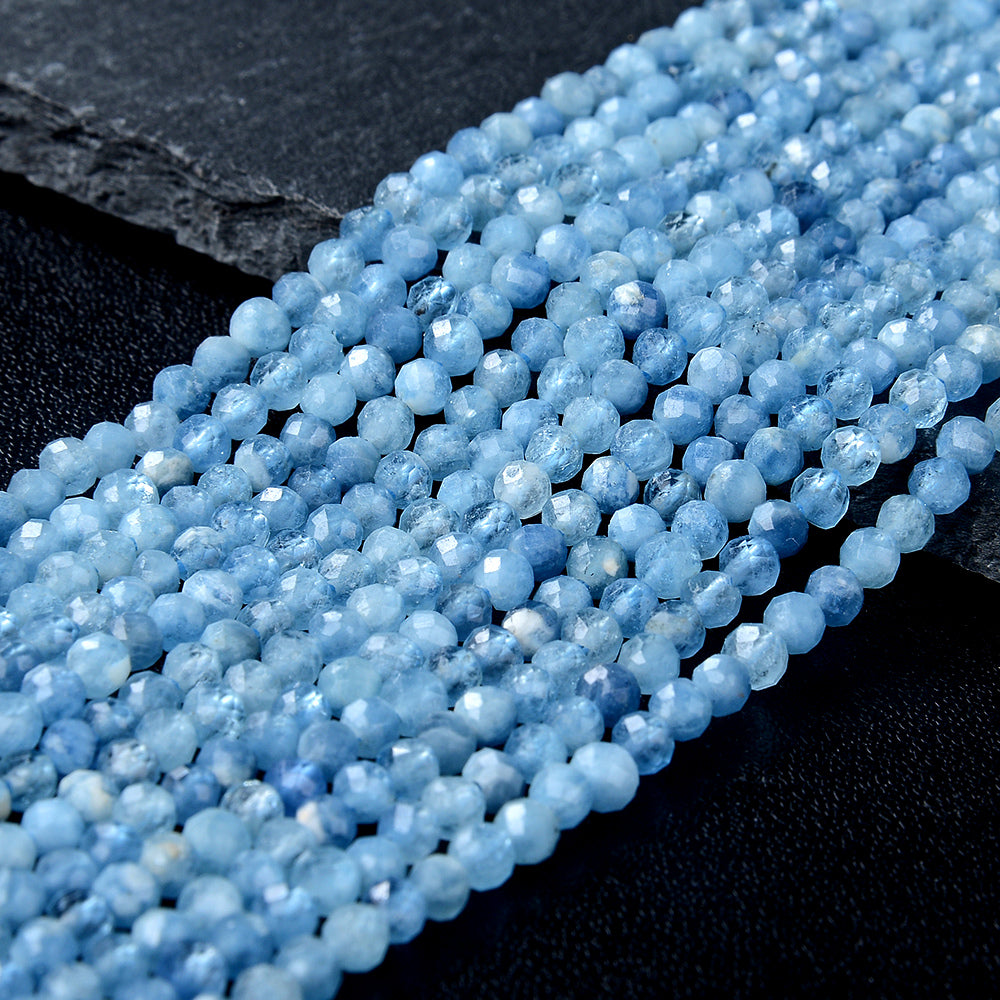 Natural Aquamarine Gemstone AAA Micro Faceted Round 3MM 4MM Loose Beads (P27 P46)