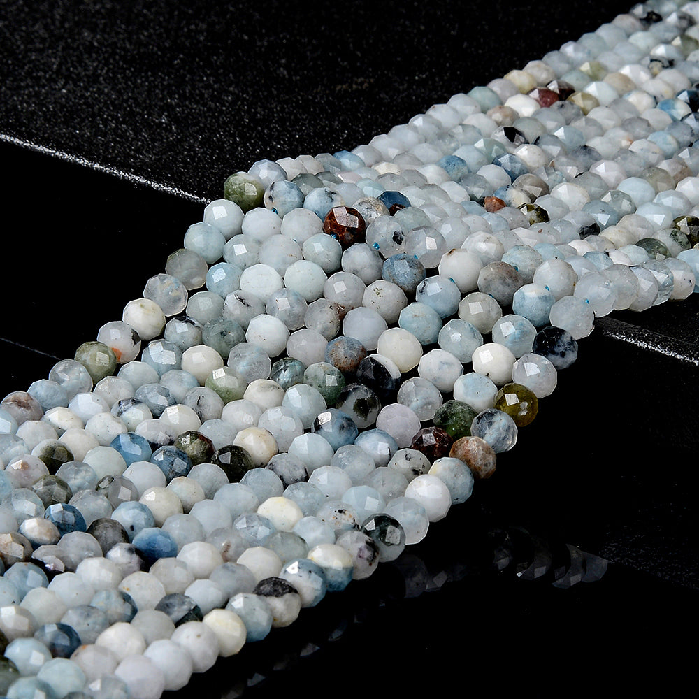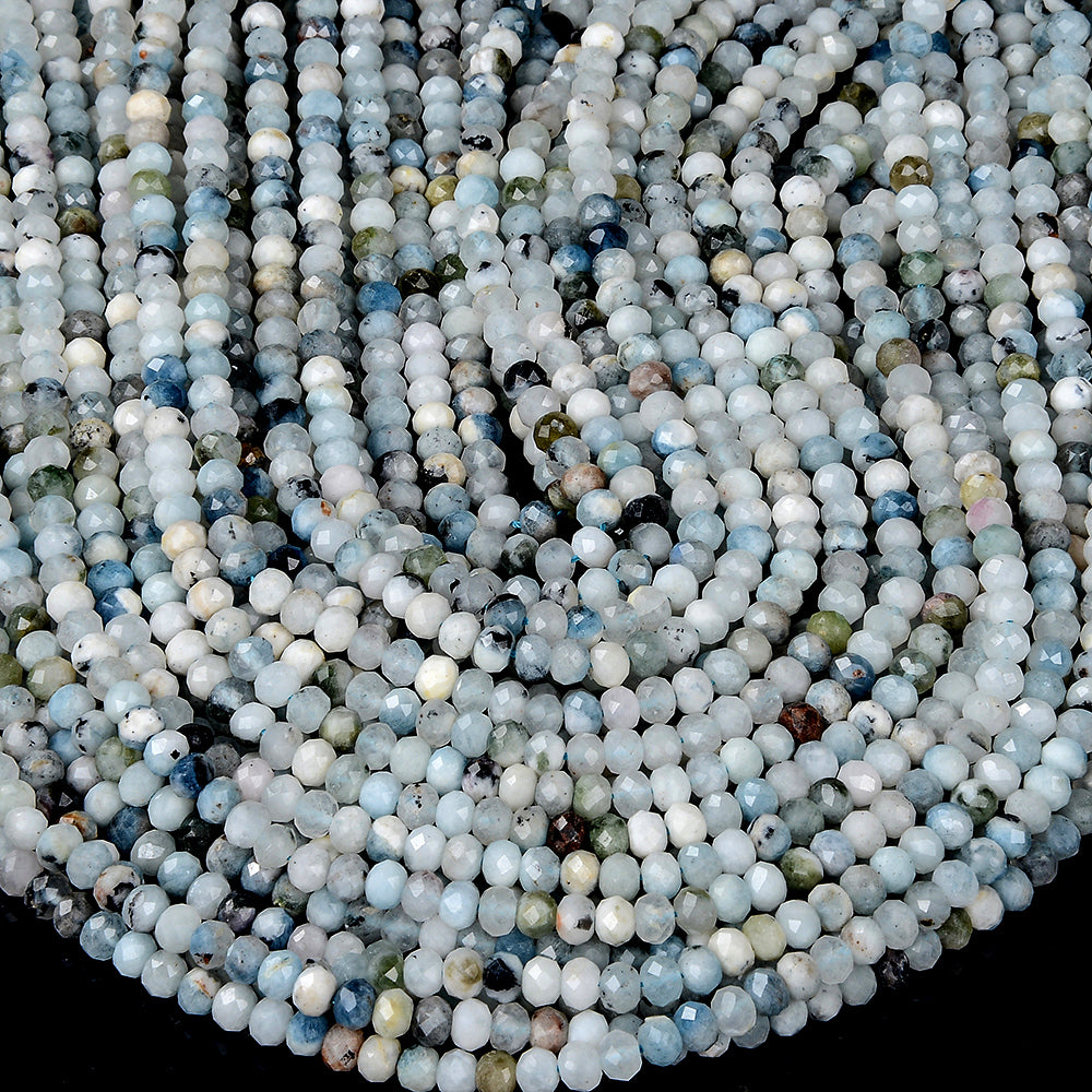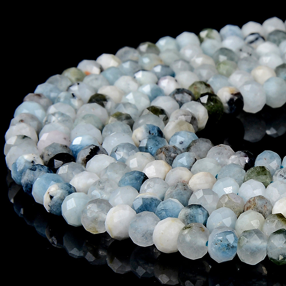 Natural Aquamarine Gemstone Grade A Micro Faceted Rondelle 6X4MM Loose Beads (P90)